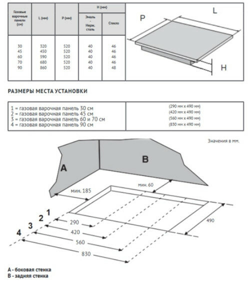 - Расположение зоны ВОК на моделях 90 см