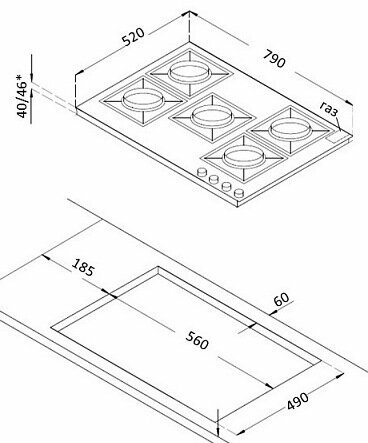 утапливаемые переключатели, чугунные решетки, газ-контроль, конфорка WOK, электроподжиг в поворотной ручке