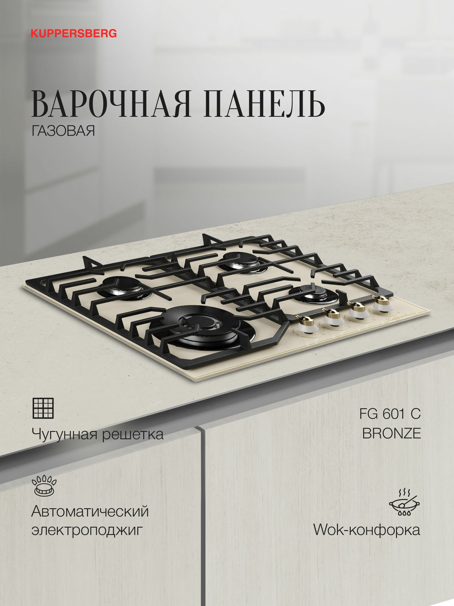 Газовая варочная панель Kuppersberg FG 601 C Bronze
