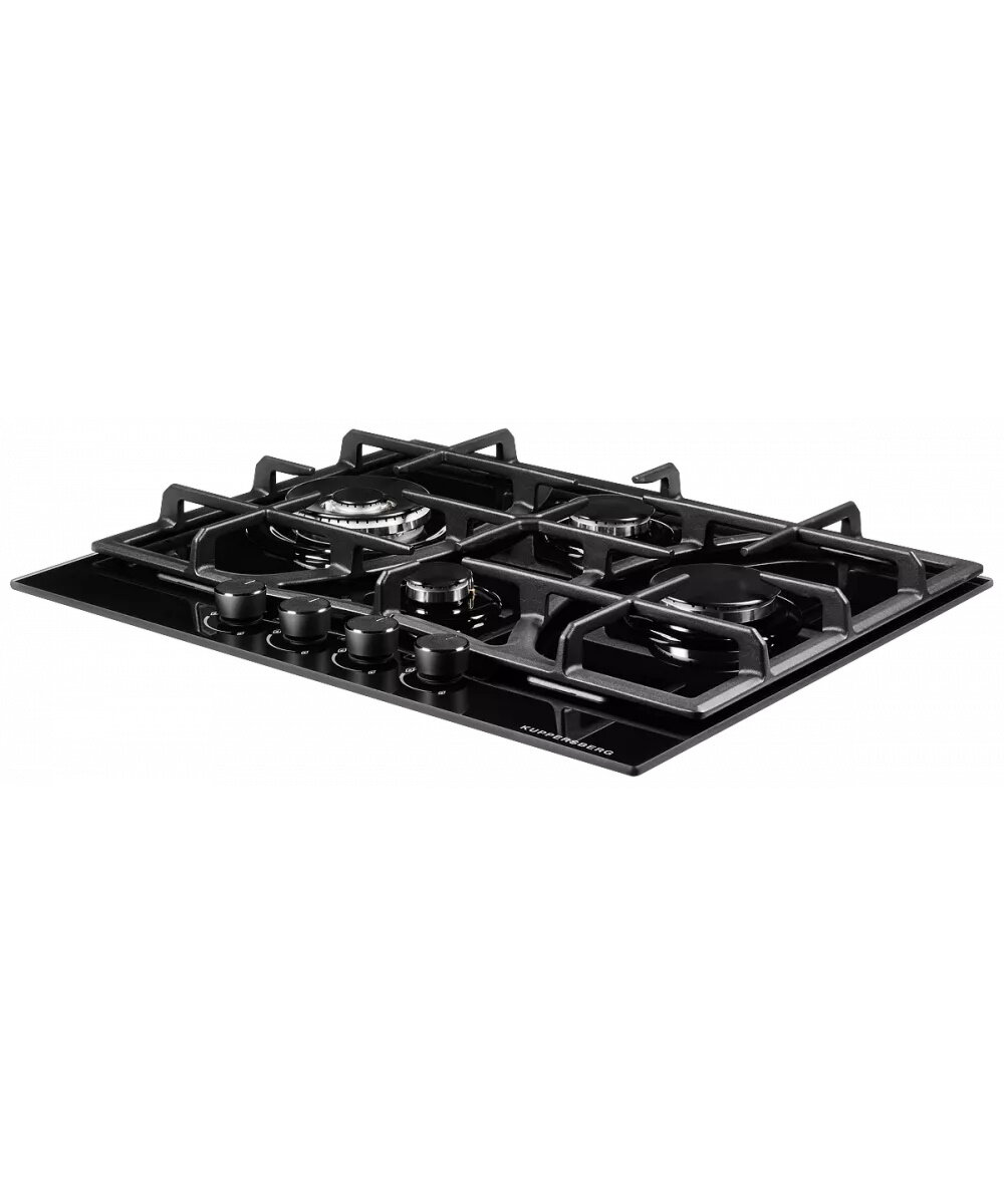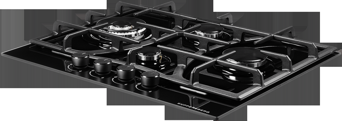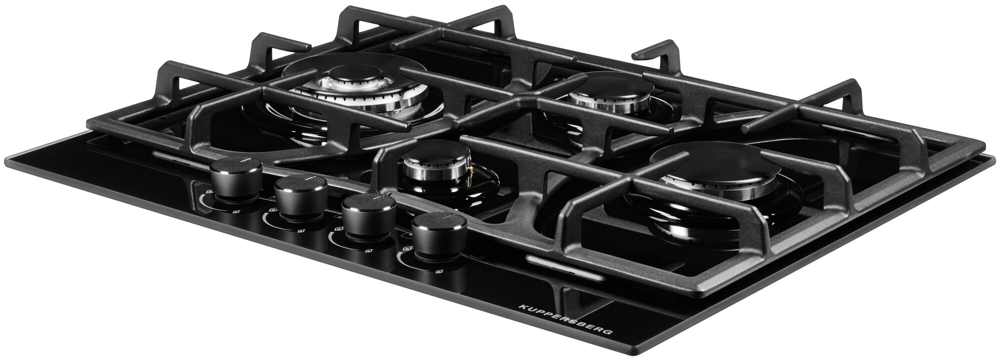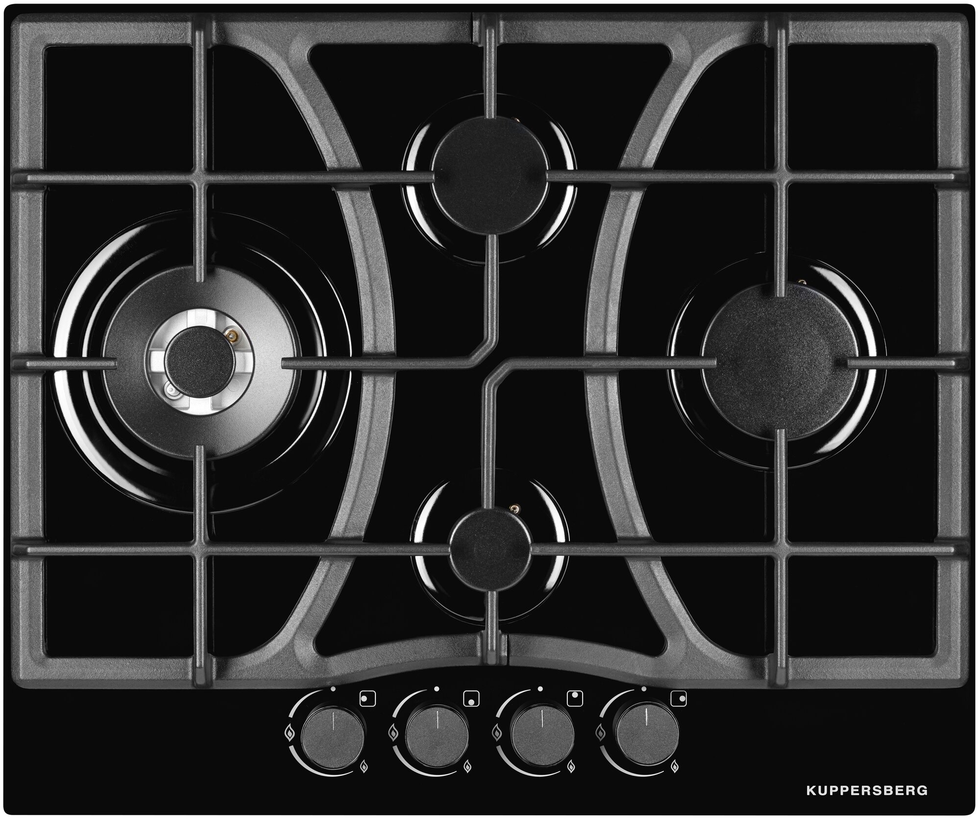 Варочная панель Kuppersberg FG 65 B шириной 61 см оснащена 4 газовыми конфорками. Горелка WOK работает на 3,8 кВт. Интенсивность пламени выбирается поворотными переключателями.
