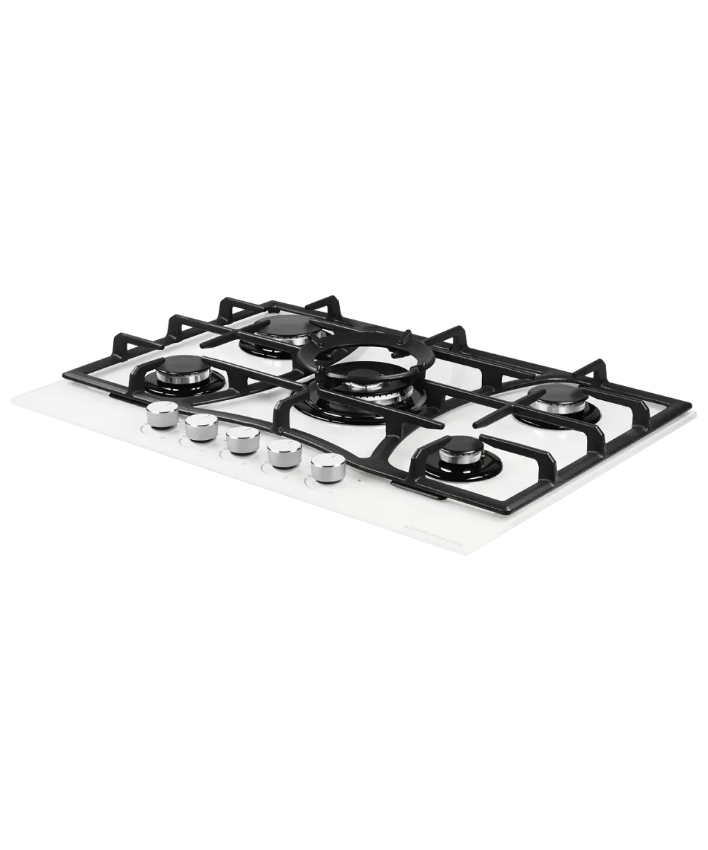 Kuppersberg FG 73 W является частью дизайнерской линейки Hi-Tech. Цвет - белый. Открытый огонь не опасен ни для вашей посуды, ни для вас, так как конфорки хорошо закрыты решетками. Сам материал поверхности: эмаль. Управление этой модели механическое. Для переключения уровней нагрева, выбора функций используйте следующие переключатели: поворотный. Простая система управления устройством делает его более универсальным, ведь каждый может это выяснить.Работать с этой моделью достаточно просто, так как мощность нагрева видна невооруженным глазом - по силе огня в конфорке. Количество конфорок в данной модели: 5.