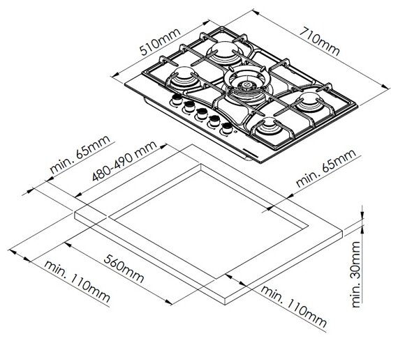 Скачать документы для Газовая варочная панель Kuppersberg FG 73 W