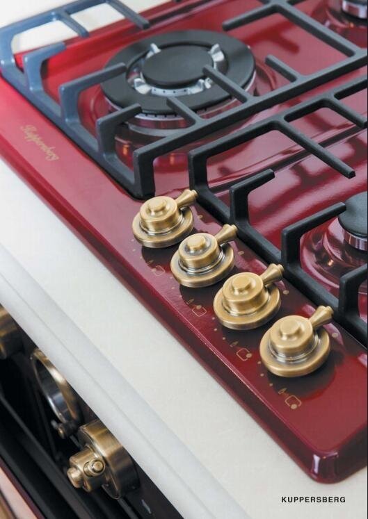 Kuppersberg FV6TGRZ BOR Bronze - это автономная газовая плита с классическим дизайном. Оригинальность модели придает необычная бордовая цветовая гамма. Благодаря такому сочетанию он становится отличным функциональным и декоративным дополнением кухонной техники в традиционном или винтажном стиле.