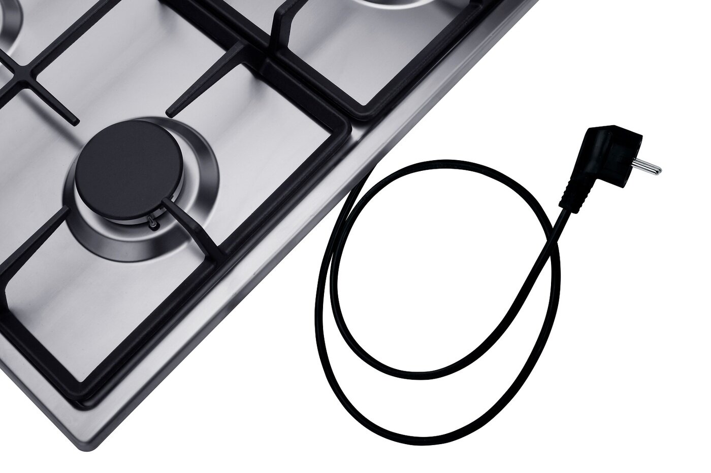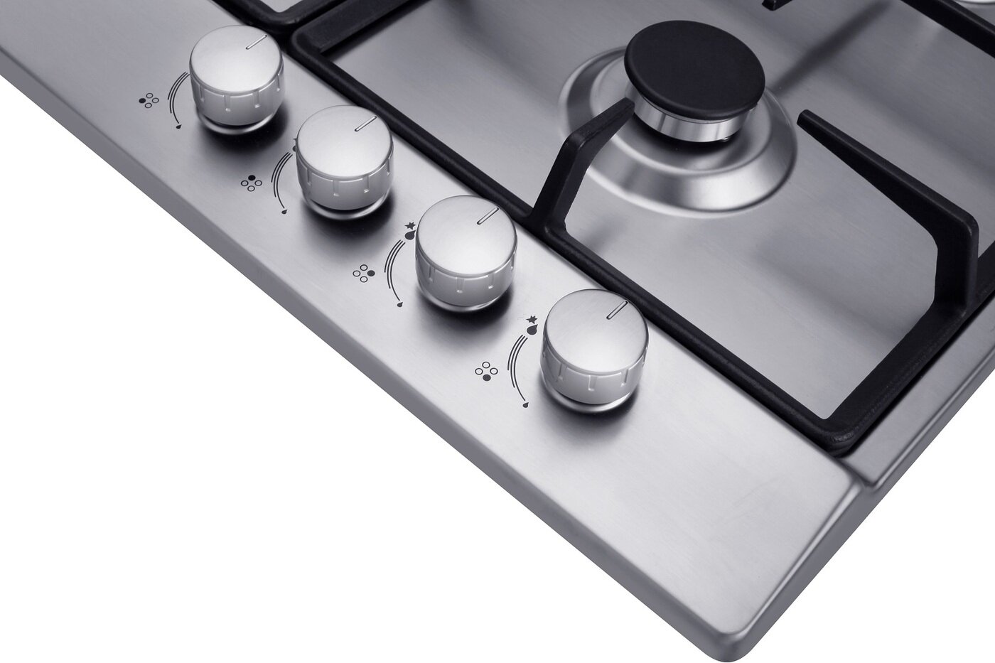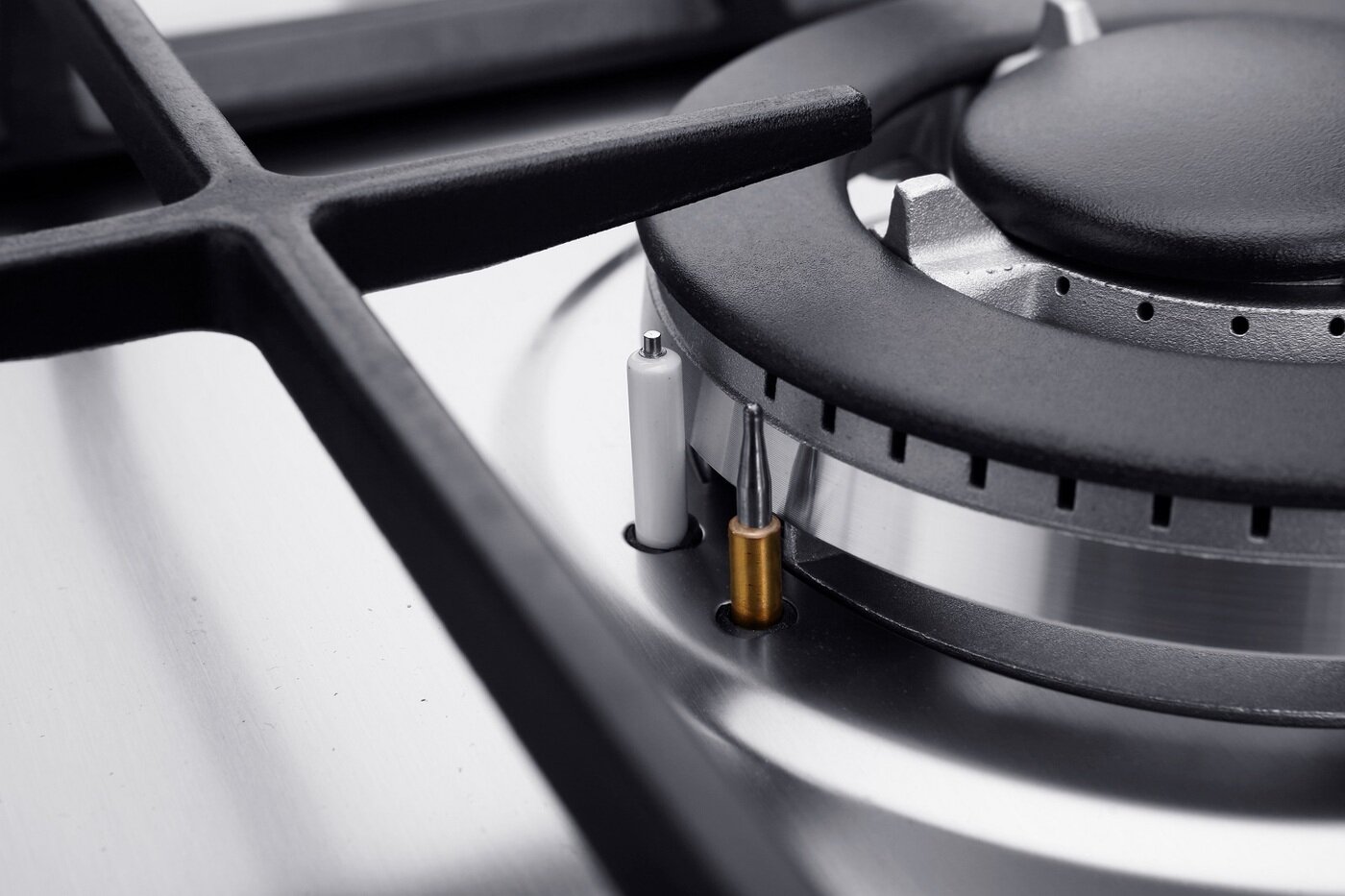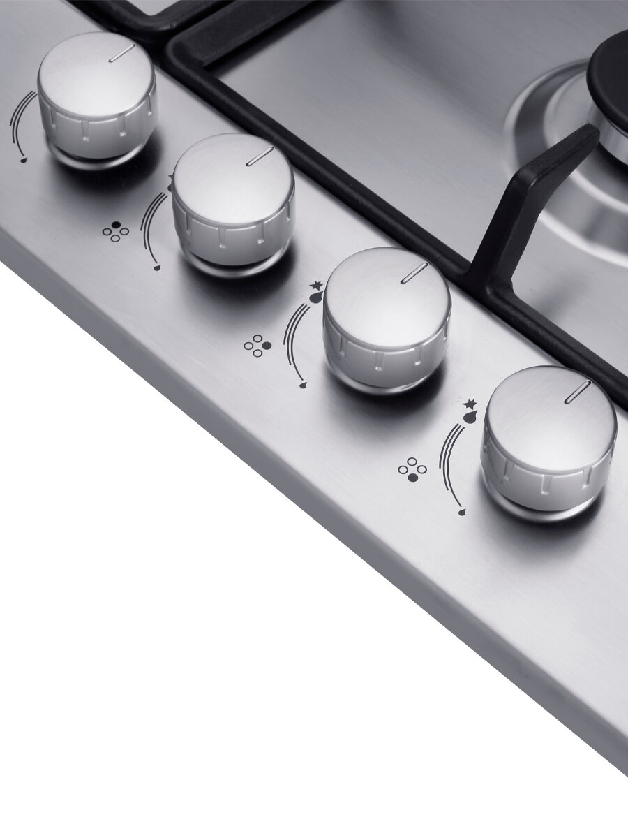 чугунные решетки, газ-контроль, конфорка WOK, электроподжиг в поворотной ручке, электроподжиг в ручке (автоматический)