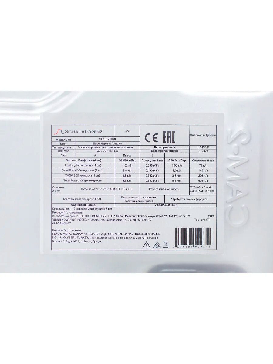 Газовая варочная панель Schaub Lorenz SLK GG6018