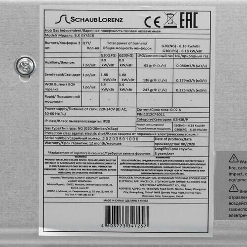 Газовая варочная панель Schaub Lorenz SLK GY4518