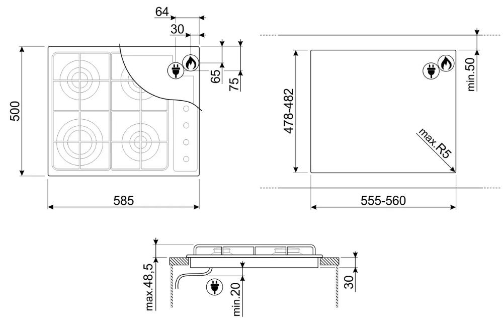 Габариты ниши для встраивания (ВхШхГ) (см)