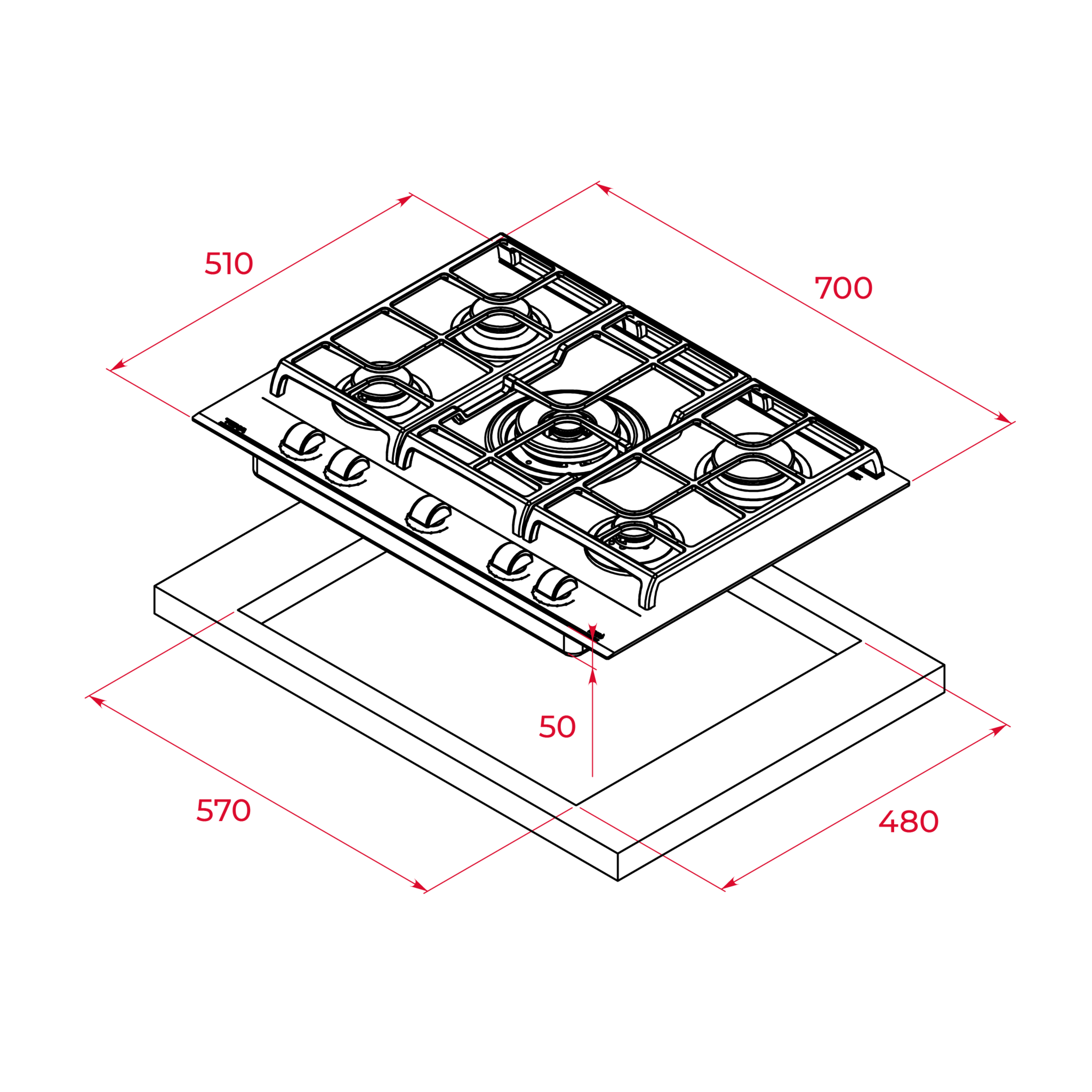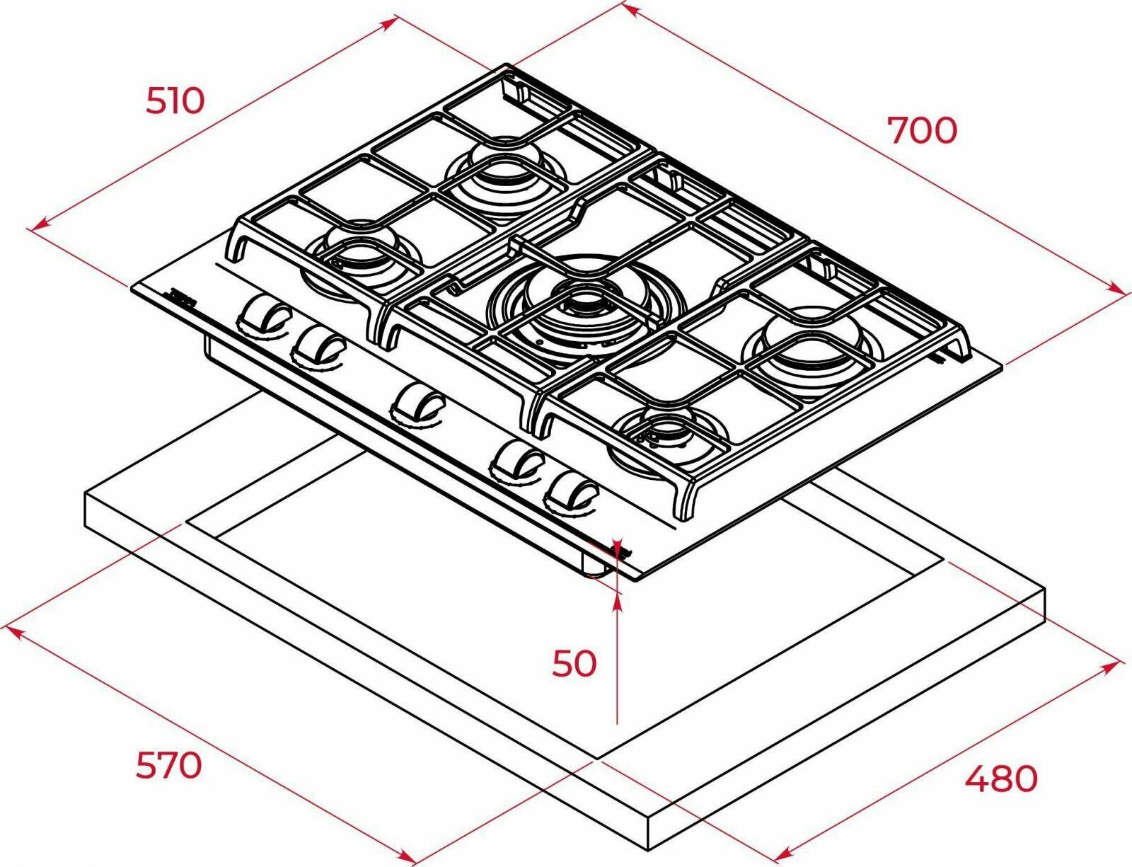 Для установки встраиваемой варочной газовой панели вам не потребуются многочисленные винты. Фиксация осуществляется специальными клипсами, поэтому выполняется самостоятельно, быстро и практически без усилий.