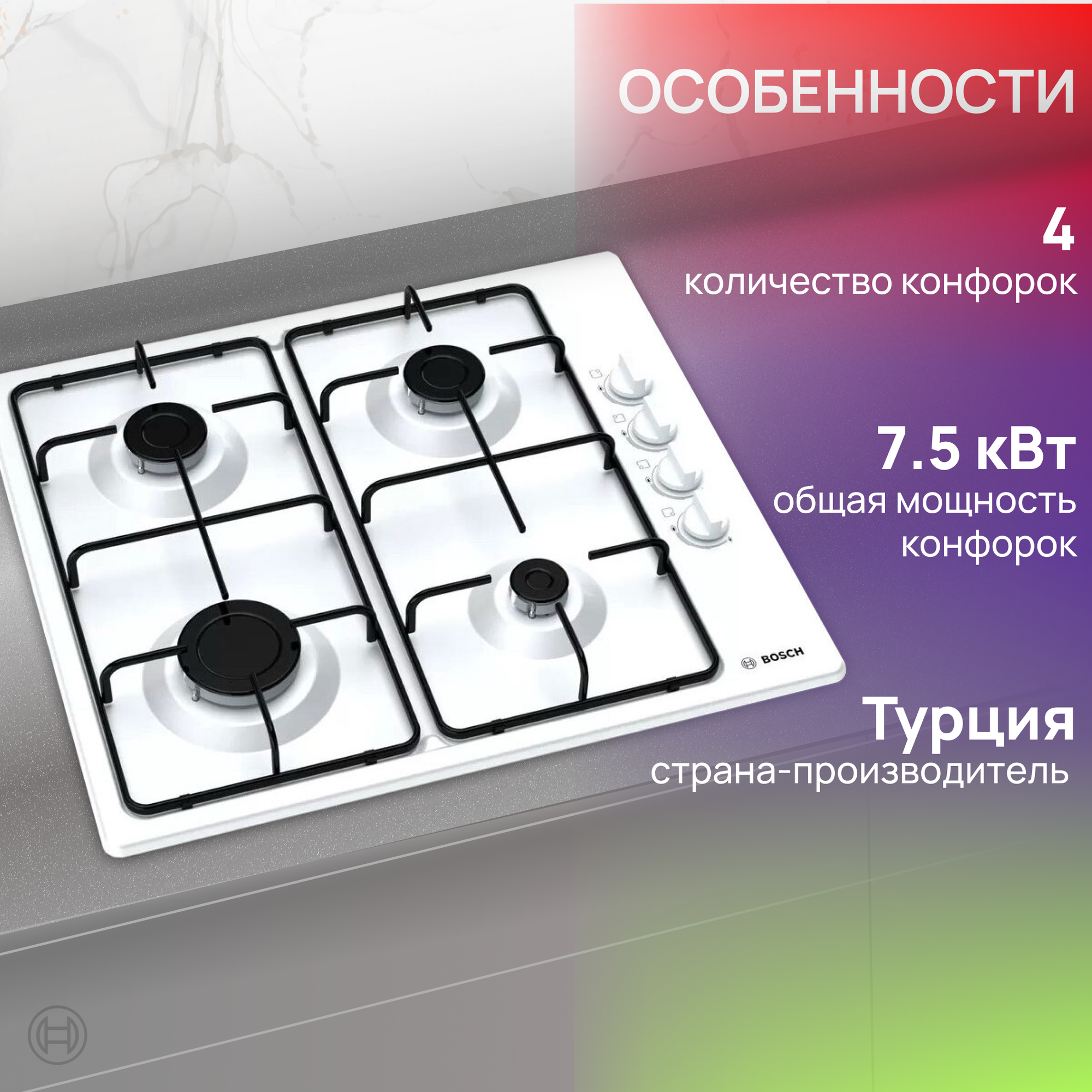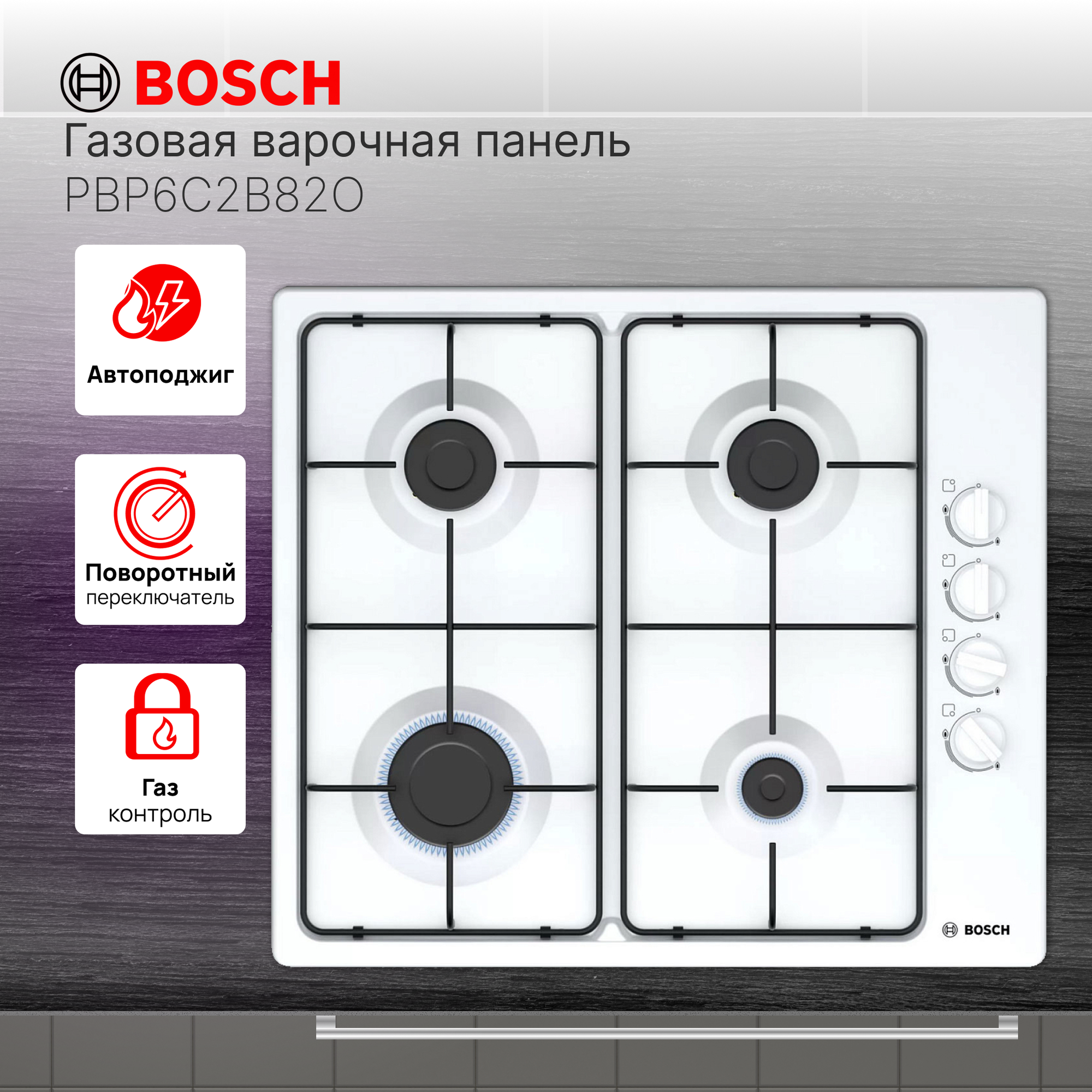 Газовая варочная поверхность Bosch PBP6C2B82O белый