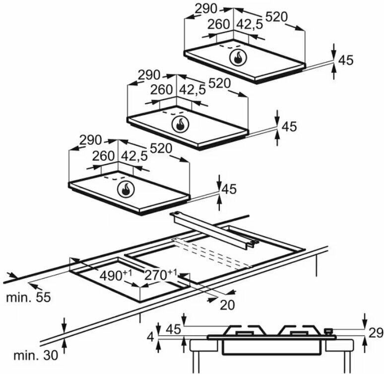 чугунные решетки, газ-контроль, электроподжиг, электроподжиг в поворотной ручке, электроподжиг в ручке (автоматический)