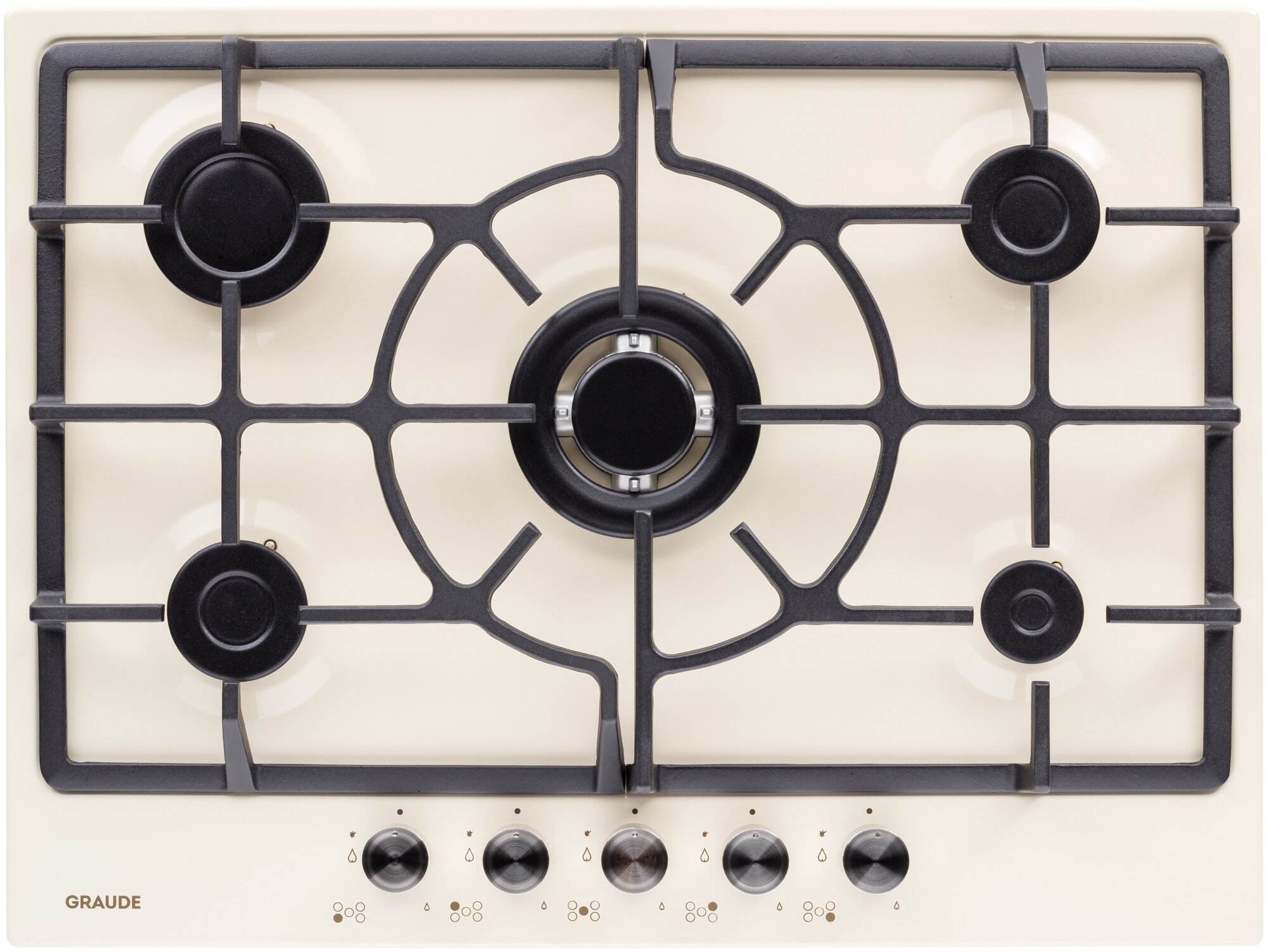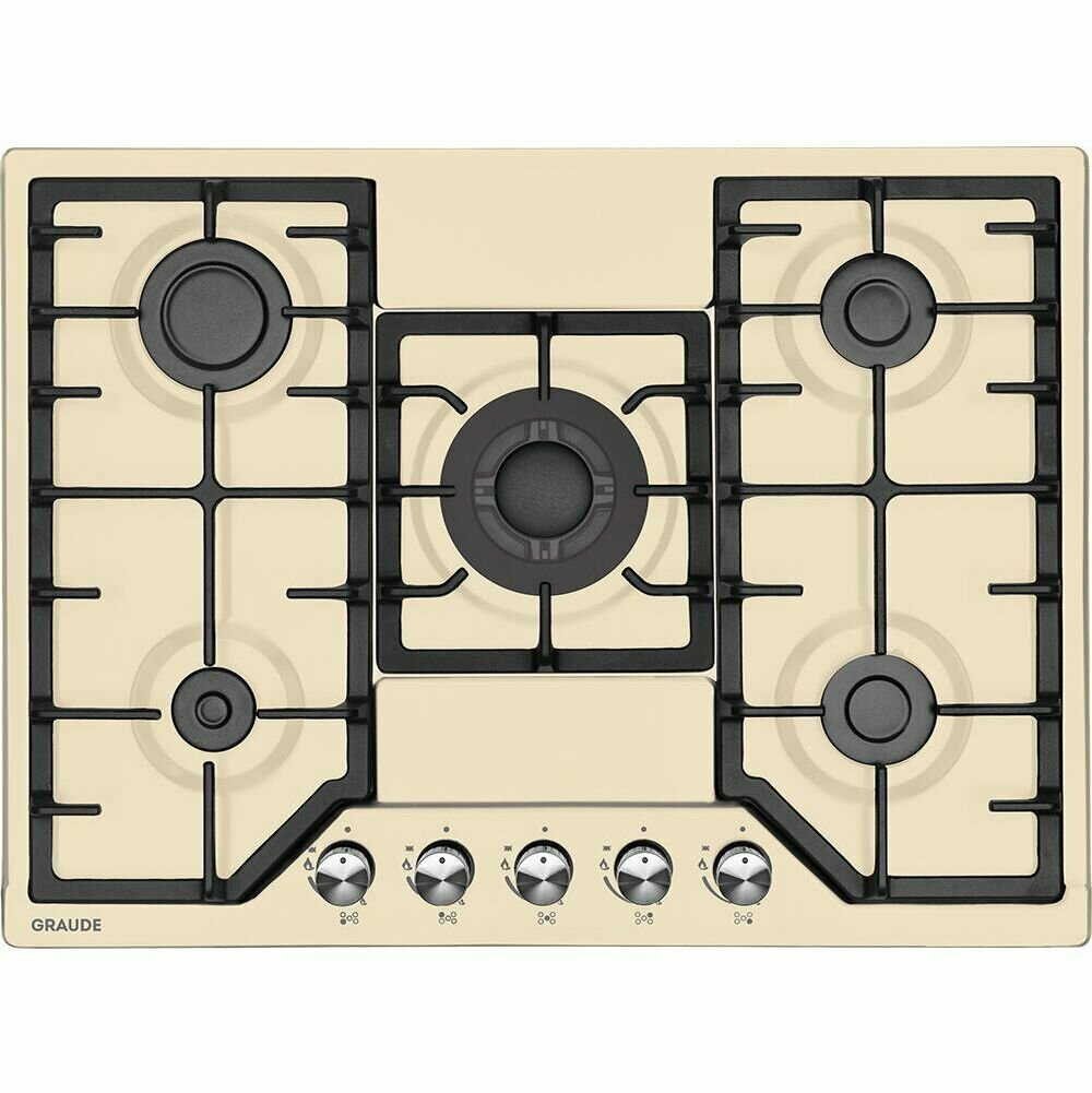 Газовая варочная панель Graude GS 70.1 CM имеет 5 конфорок разной мощности, в том числе мощный очаг WOK. Поверхность сделана из металла, покрытого особо стойкой эмалью, за которой легко ухаживать, очищать от остатков пищи и других загрязнений. Варочная панель оснащена тройной чугунной решеткой.