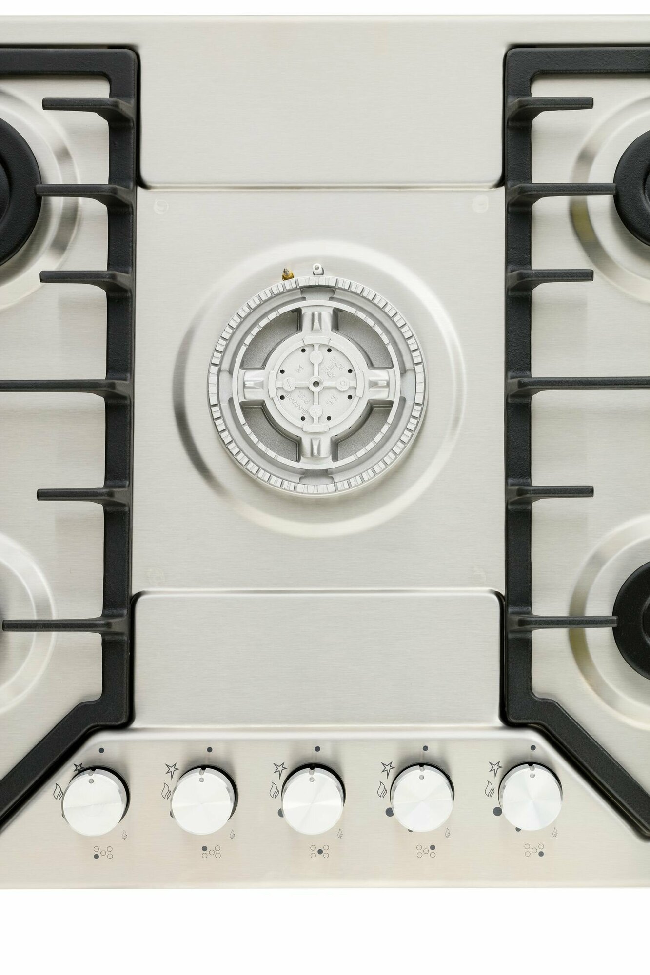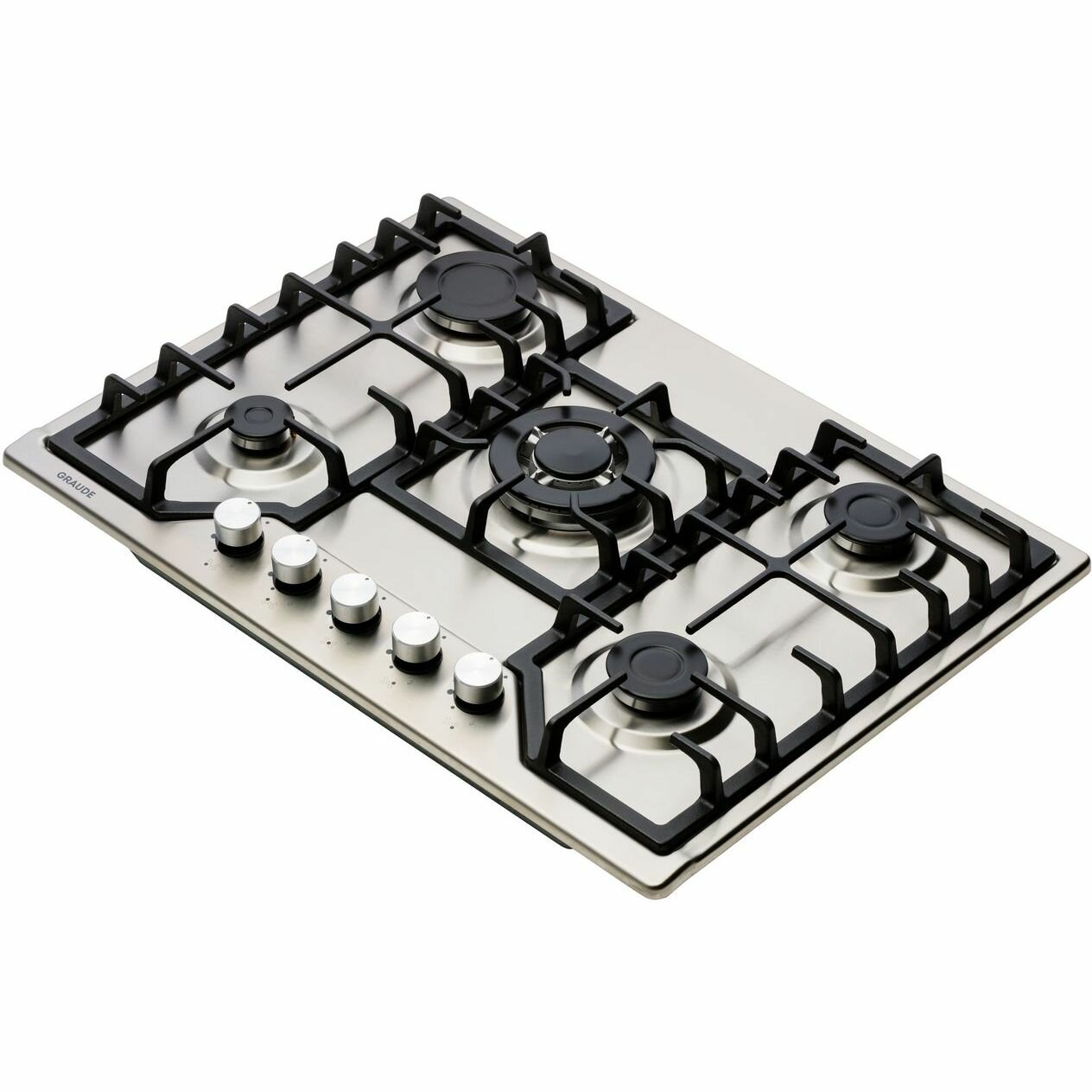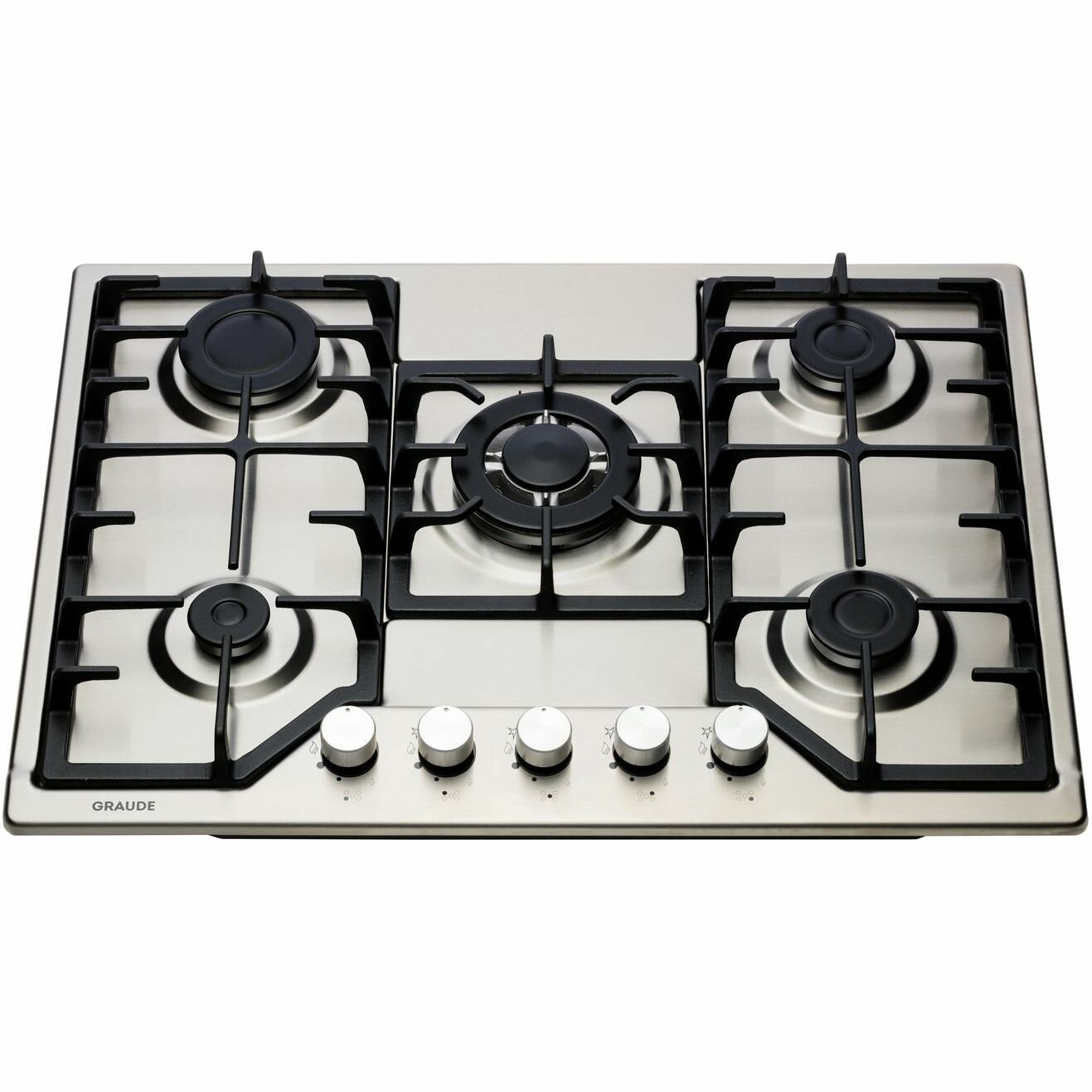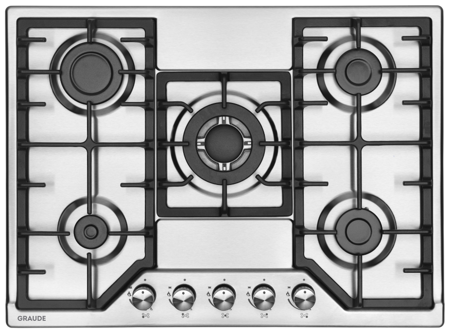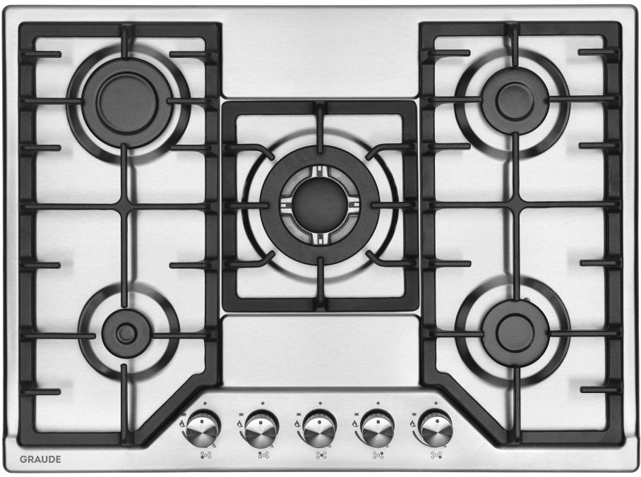 Газовая варочная панель Graude GS 70.1 E имеет 5 конфорок разной мощности, включая мощную варочную панель WOK. Поверхность изготовлена из нержавеющей стали, легко очищается, не содержит остатков пищи и других загрязнений. Варочная панель оснащена тройной чугунной решеткой.