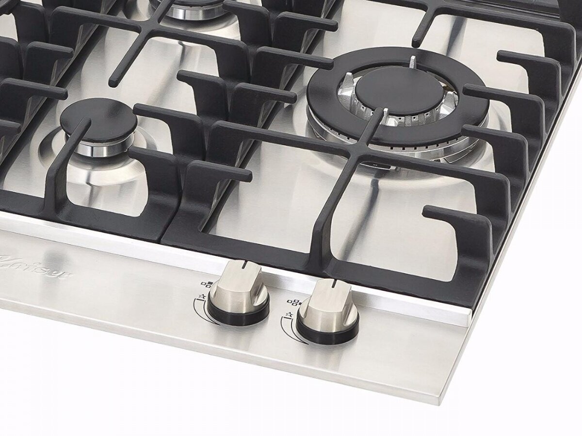 1 × 13,0 cm (3,8 kW) – triple Turbo burner with cast iron Wok adapter 1 × 9,0 cm (3,0 kW) – large burner 1 × 6,5 cm (1,75 kW) – standard burners 1 × 4,0 cm (1,0 kW) – economy burner