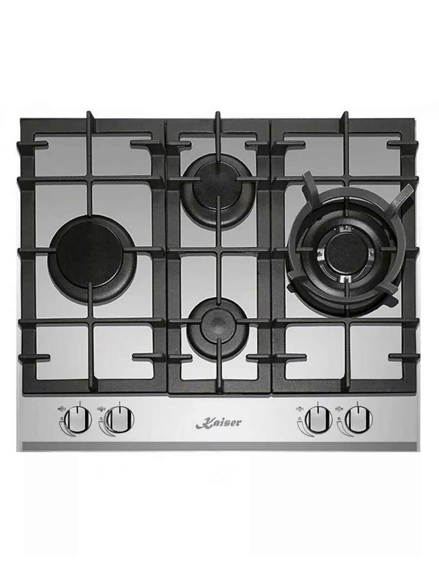 Газовая варочная панель Kaiser KG 6364 Turbo Romb из нержавеющей стали проста в обращении и чистке. Система самовоспламенения работает по нажатию кнопок. Готовьте любую еду за меньшее время в турбо-режиме.