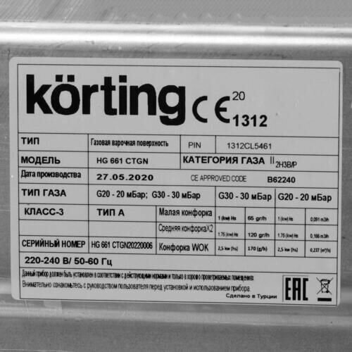 Скачать документы для Газовая варочная панель Korting HG 661 CTGN
