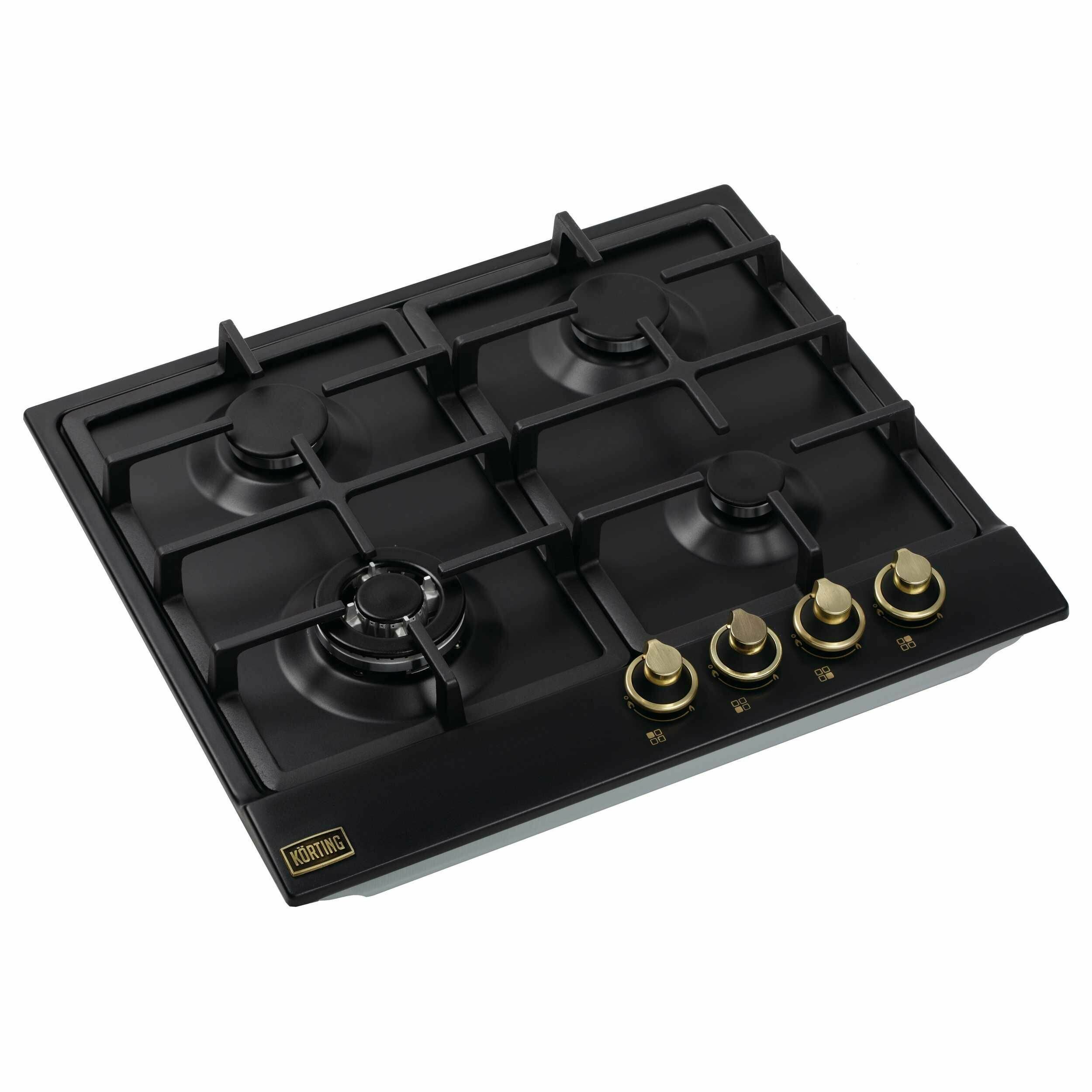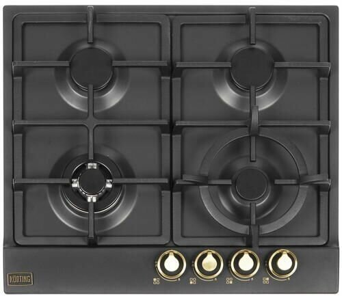 Газовая варочная поверхность Korting HG 661 CTGN - представлен в классическом черном дизайне с четырьмя конфорками и переключателями золотого цвета. Эмалированная стальная пластина легко очищается от грязи и долго выглядит хорошо. Горелки дополнены прочными чугунными решетками.