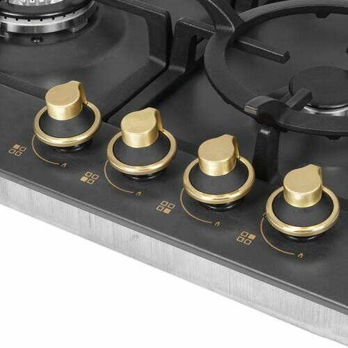 чугунные решетки, газ-контроль, конфорка WOK, электроподжиг в поворотной ручке, электроподжиг в ручке (автоматический)