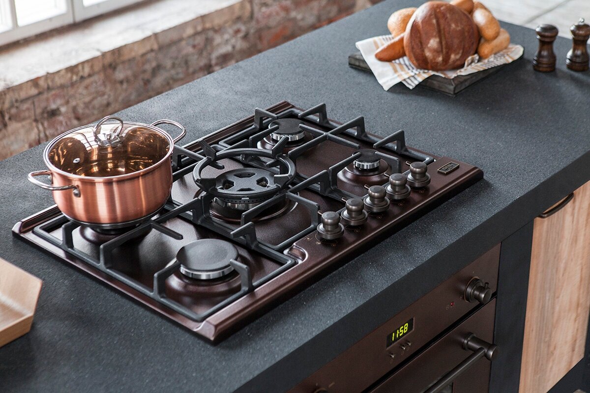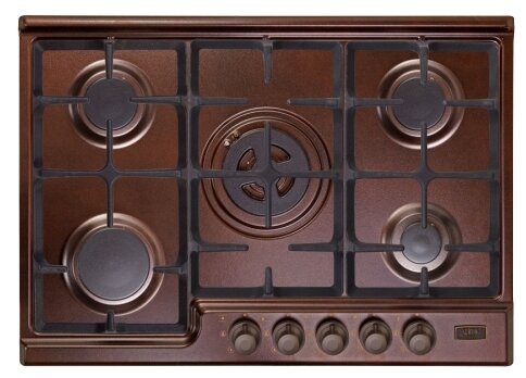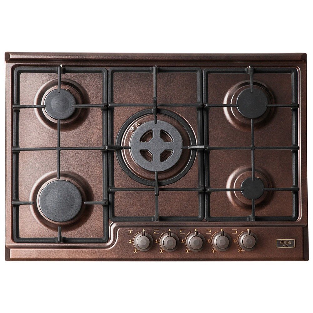 Газовая варочная поверхность Korting HG 7115 CTRC - повар-любитель может почувствовать себя крутым профессионалом. Прибор имеет 5 конфорок разного размера, которые можно использовать одновременно. Размеры платы не отличаются от обычных. Корпус устройства выполнен из эмалированной стали, декорированной под медь.