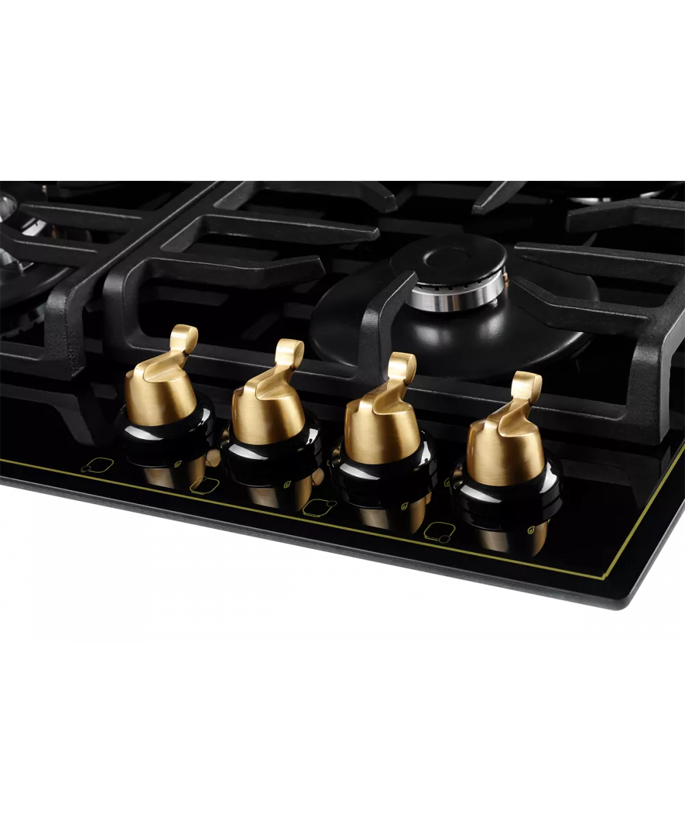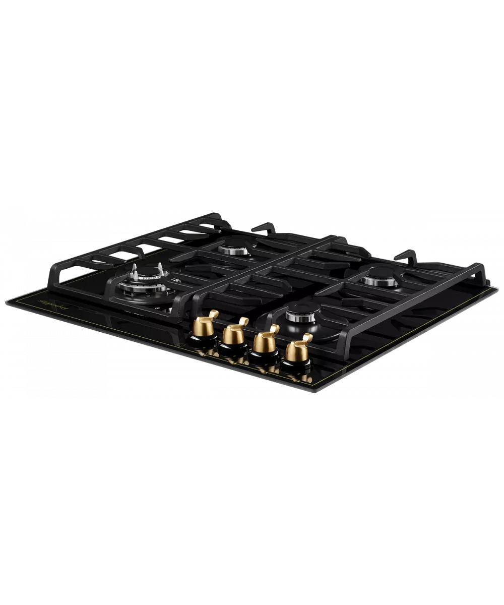 Газовая плита Kuppersberg FQ 602 B изготовлена из закаленного стекла черного цвета. Слева спереди находится горелка WOK мощностью 2,5 кВт. Устройство оснащено газовым регулятором и электрическим розжигом, что делает его использование безопасным и удобным.