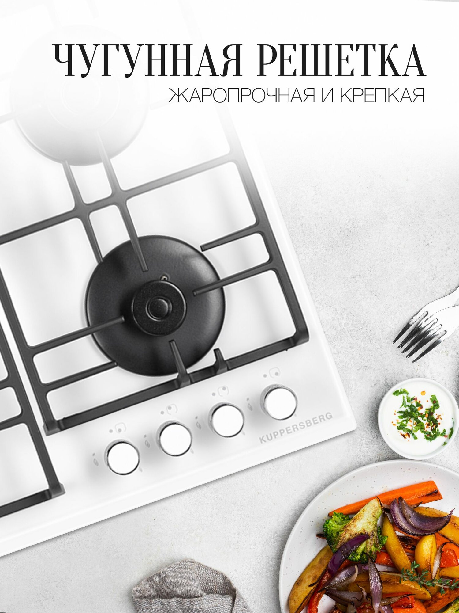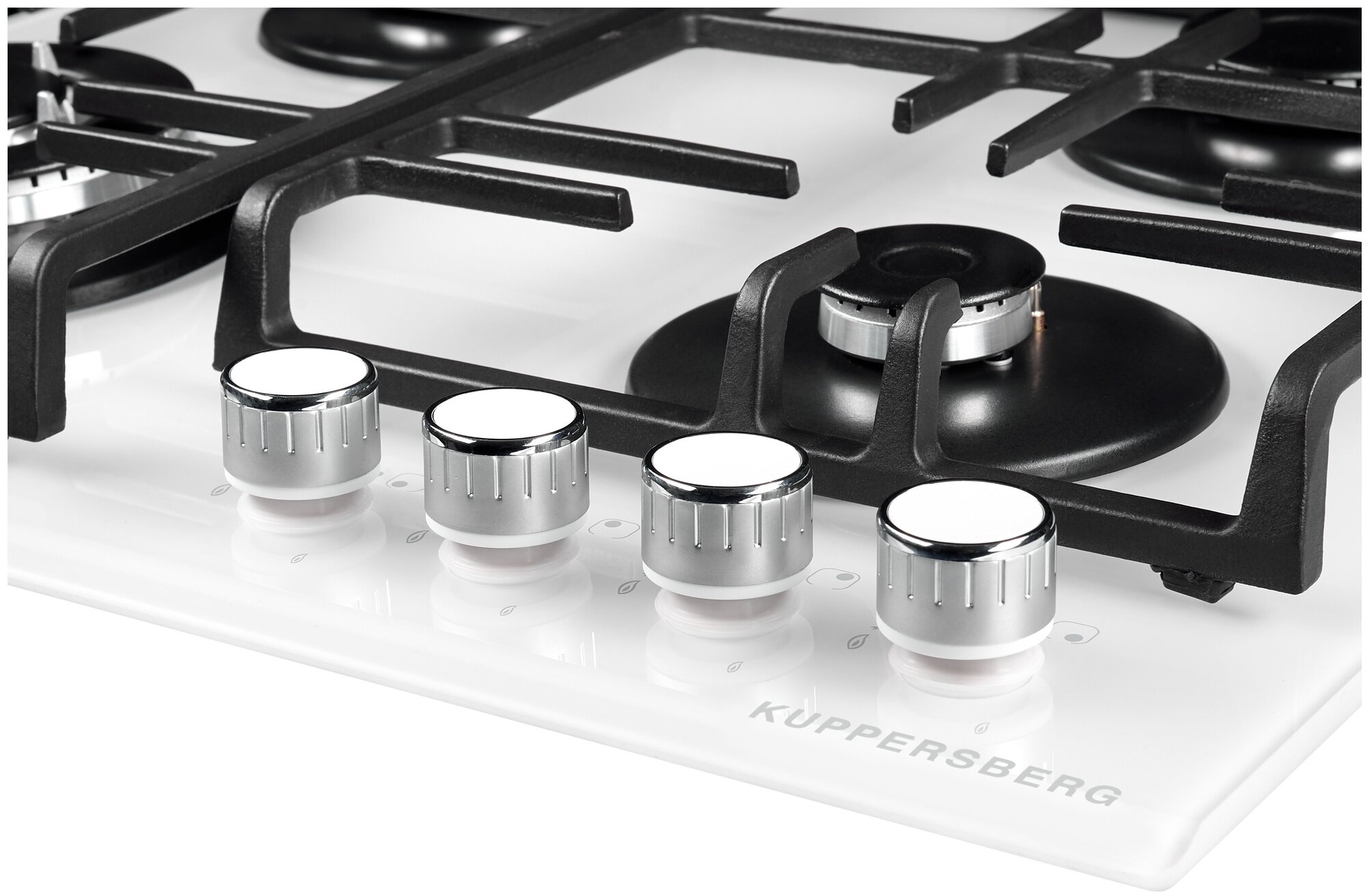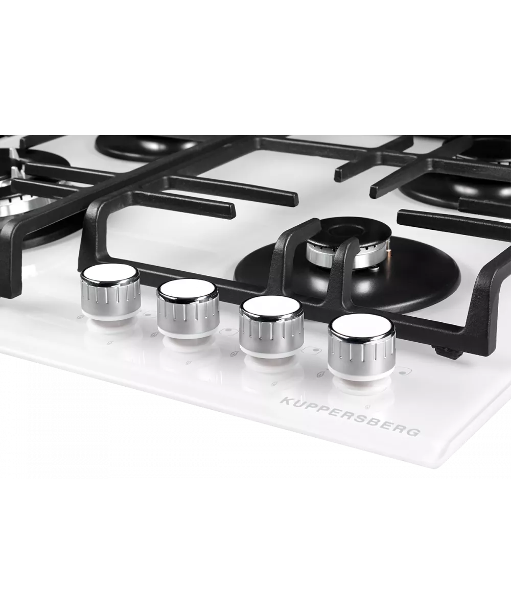 Белая газовая плита Kuppersberg FQ 63 W - модель из серии газ на стекле. Гладкая поверхность проста в уходе и чистке. Газ-контроль и электрический розжиг обеспечивают безопасность и комфорт.