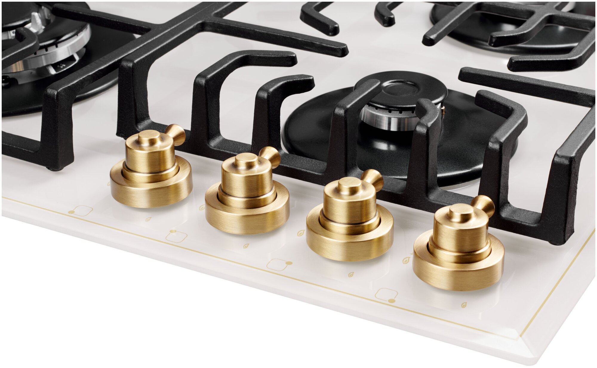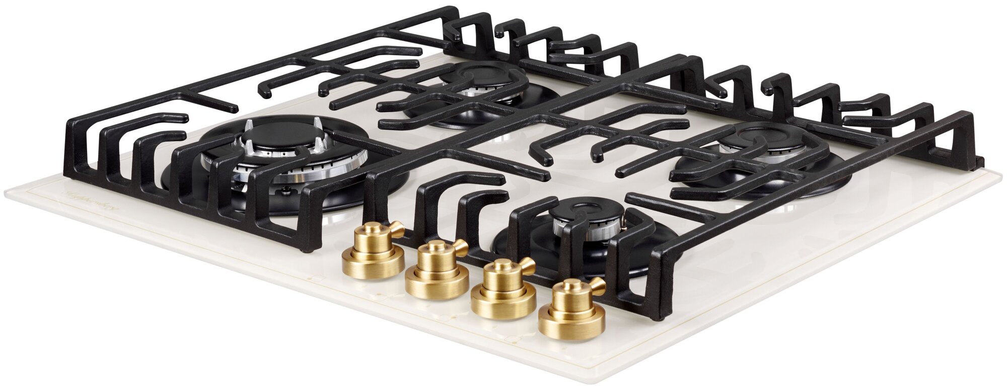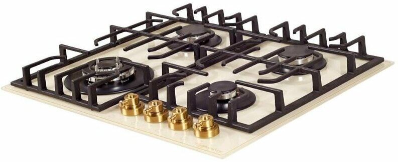 мощность конфорок: передняя левая/конфорка WOK 2,5 кВт, передняя правая 1,0 кВт, задняя левая 1,75 кВт, задняя правая 1,75 кВт; форсунки под сжиженный газ; держатель для турки; бронзовый цвет фурнитуры