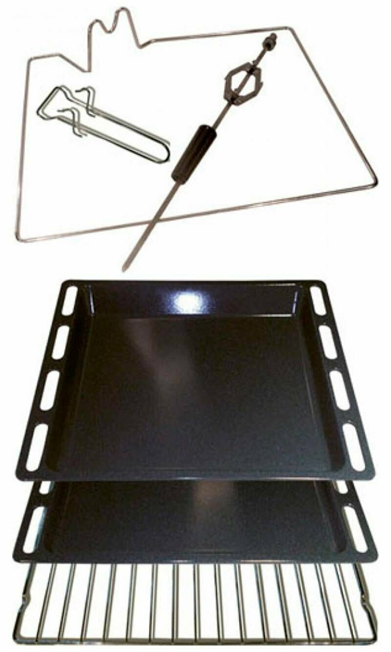 решетка, глубокий противень, вертел, рамка под вертел, ухват для противней