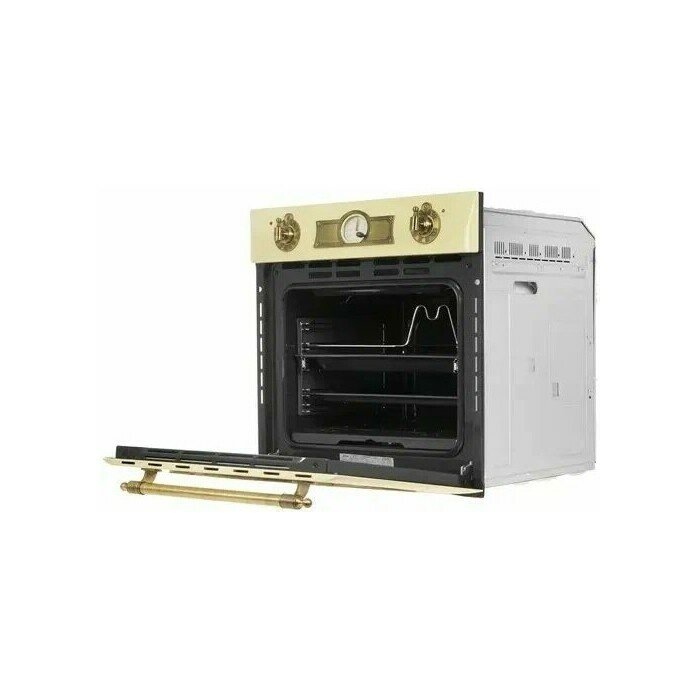 размораживание, таймер, Вентилятор охлаждения, Встроенные часы, Дизайн Ретро, Рецепты на двери, Электромеханический вертел