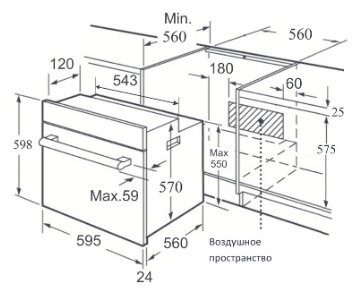 вертел, подсветка камеры, тангенциальное охлаждение, телескопические направляющие, эмаль легкой чистки, вертел, подсветка камеры