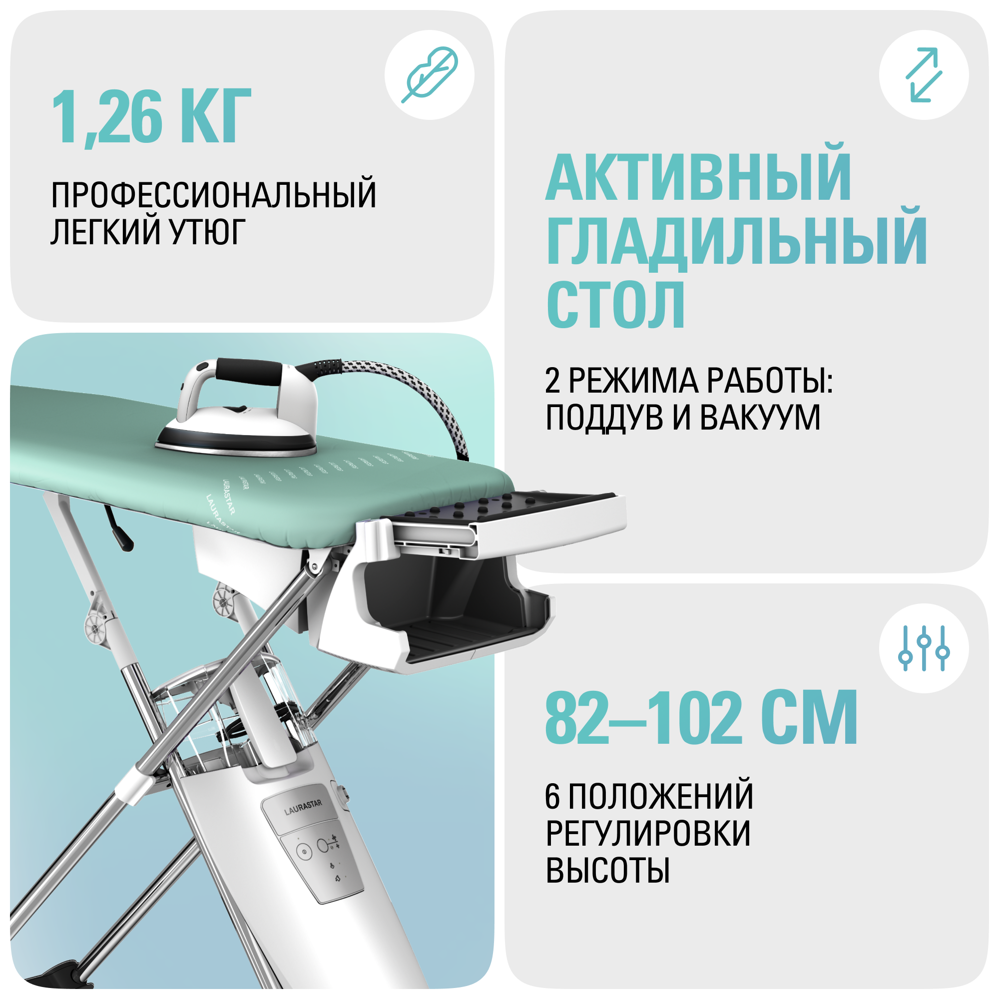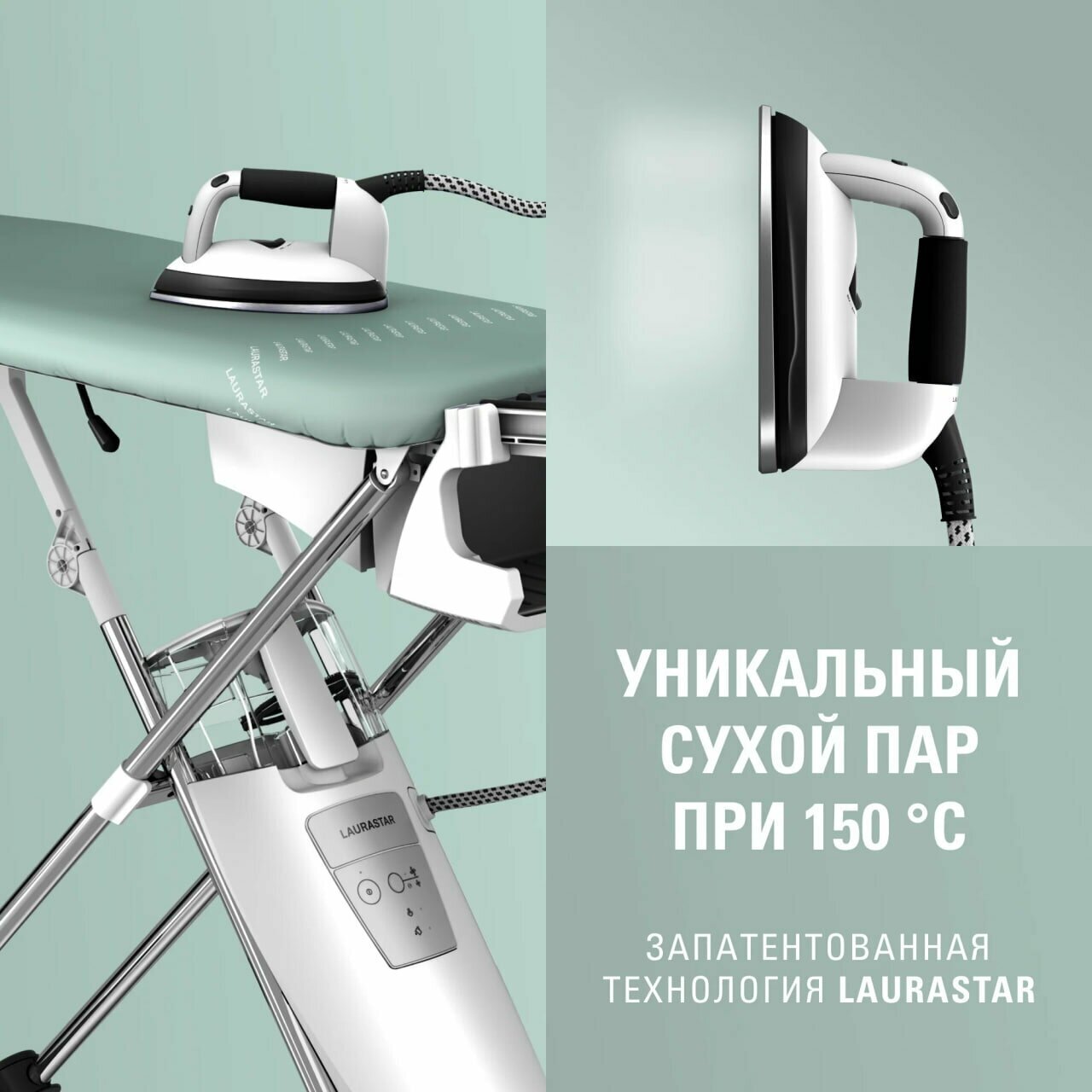 активная гладильная доска, вертикальный пар, возможность сухой глажки, наддув поверхности, паровой удар, постоянная подача пара, система самоочистки, Добавление воды при глажке, Обеззараживание ткани, Сухой пар