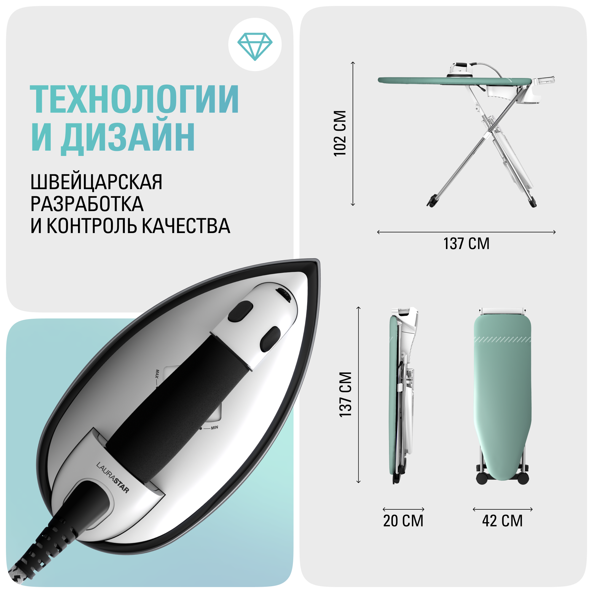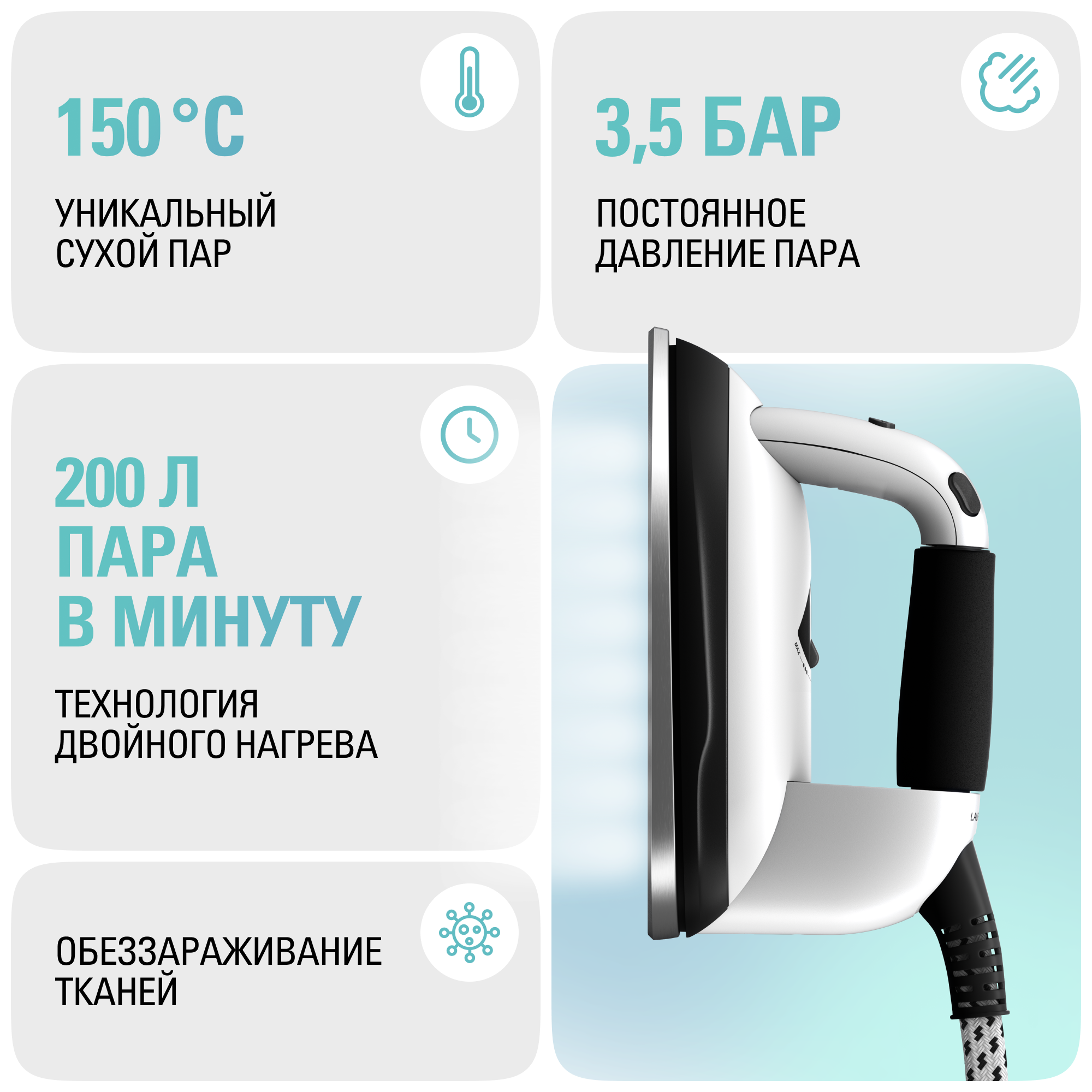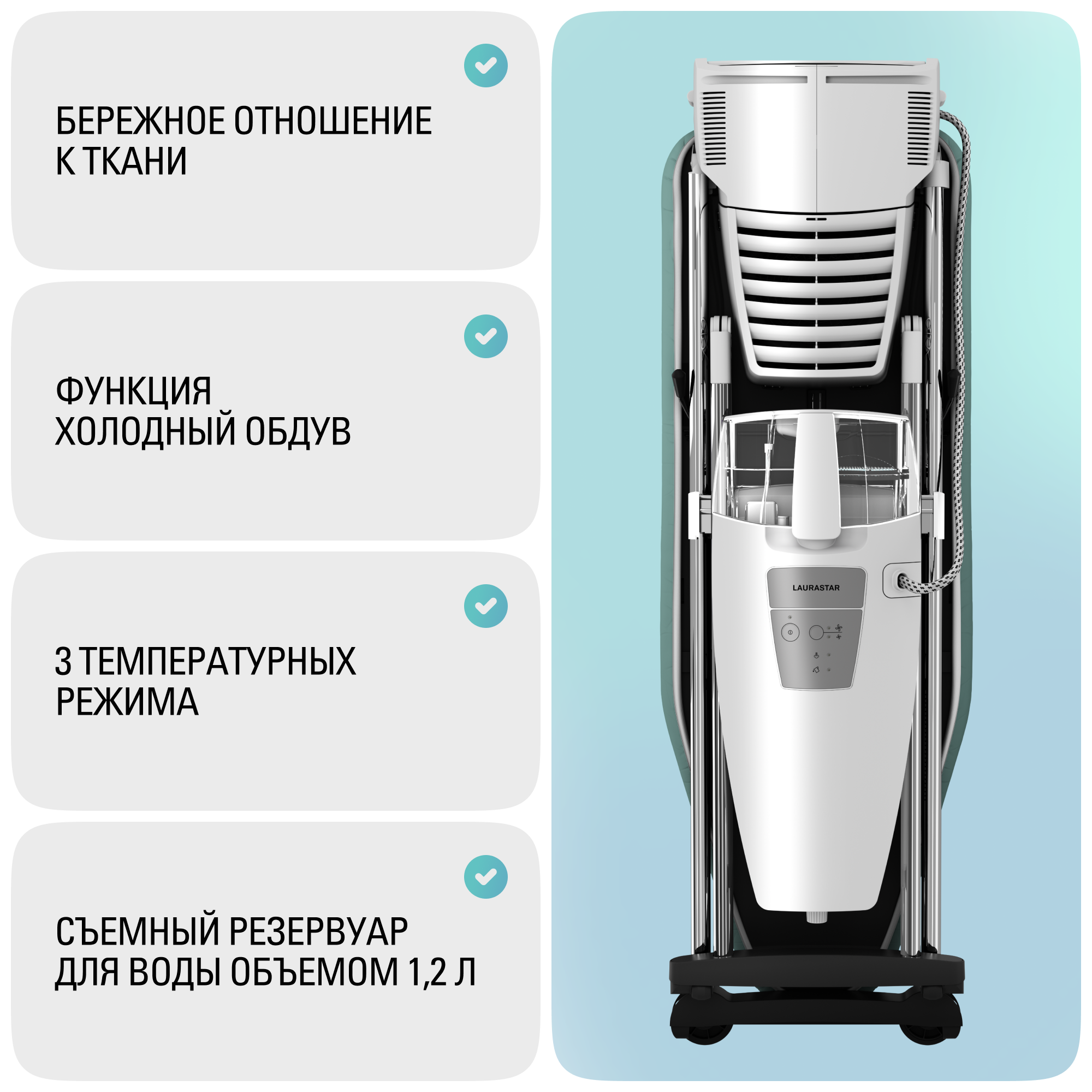 автоматическое отключение, долив воды во время работы, защита от детей, чехол для гладильной доски, Телескопическая стойка, защита от накипи, система самоочистки, складная система, съемный резервуар для воды, фильтр для воды