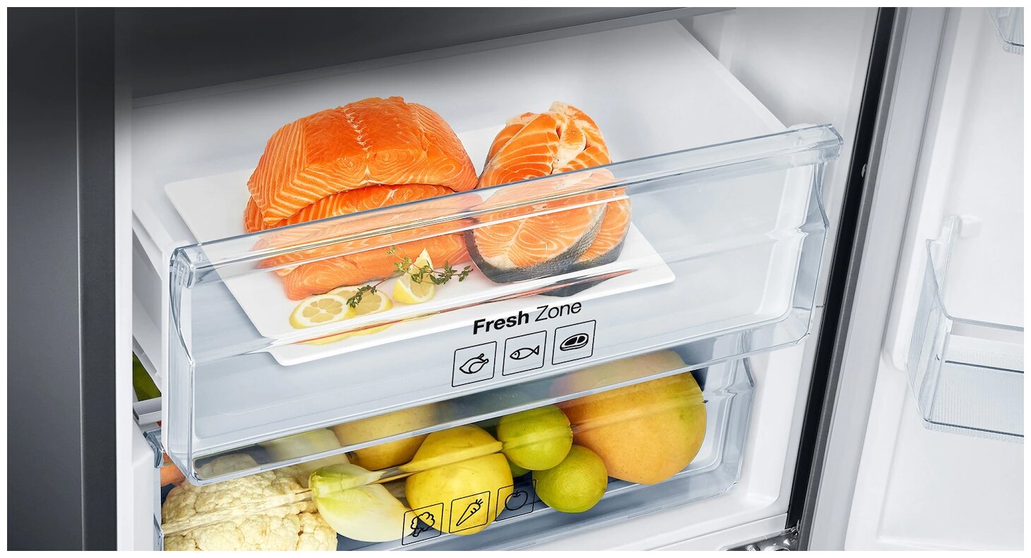 защита от детей, индикация температуры, система контроля влажности, Full No Frost, Дисплей, Зона свежести, Скрытые ручки, Суперзаморозка, индикация температуры, система контроля влажности, Зона свежести