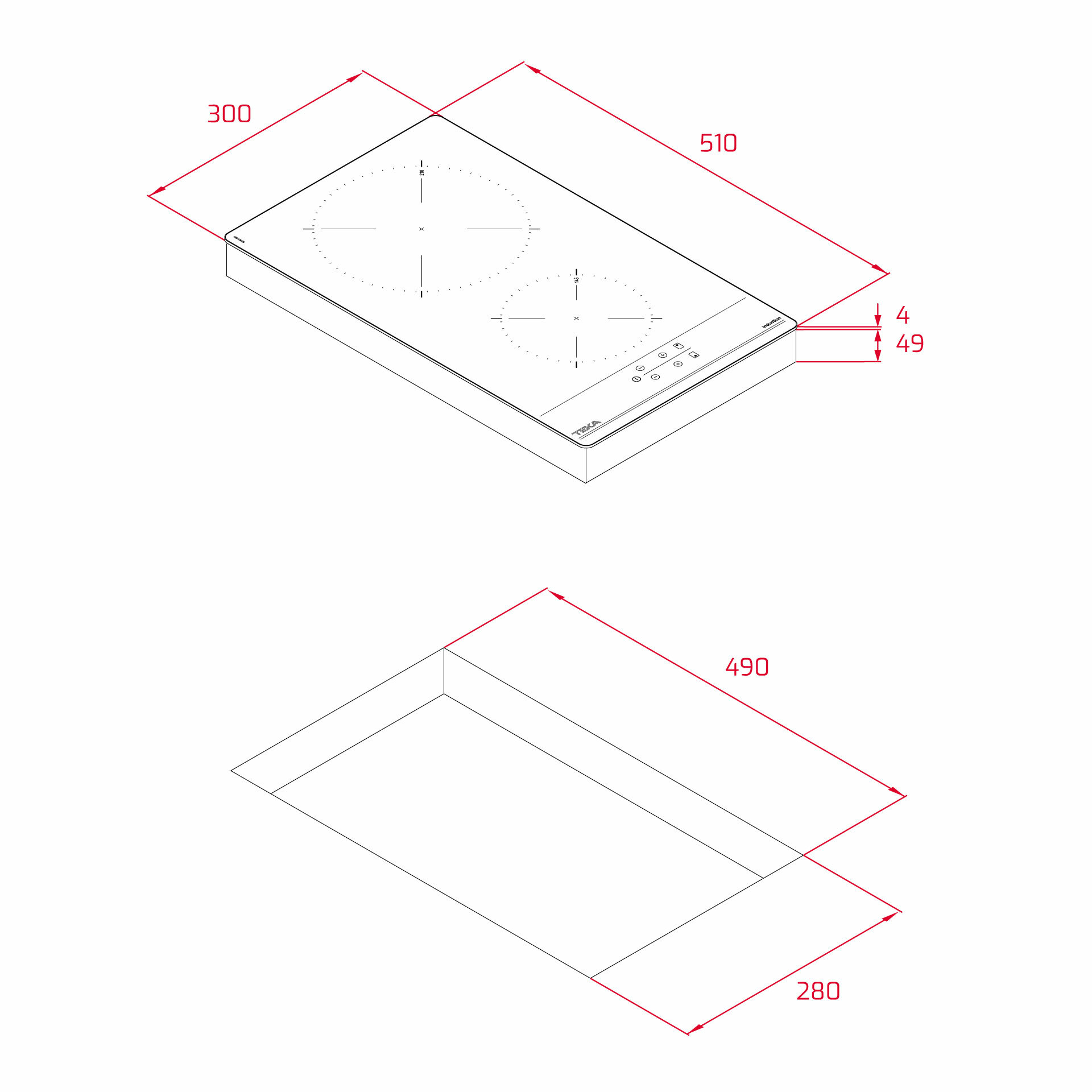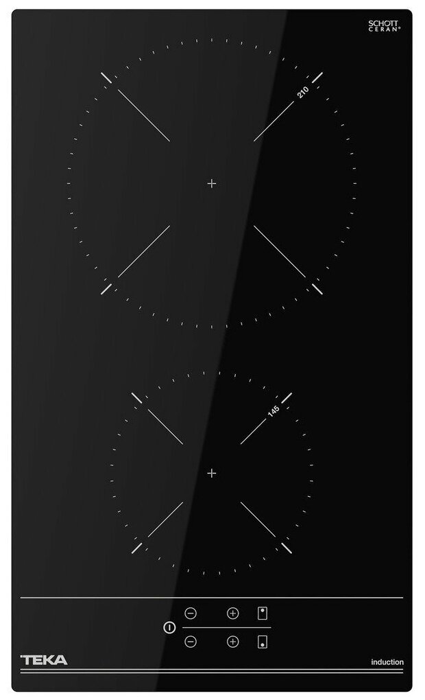 1 индукционная зона Ø 210 мм (2,1/3,0 кВт), 1 индукционная зона Ø 145 мм (1,2/1,6 кВт)