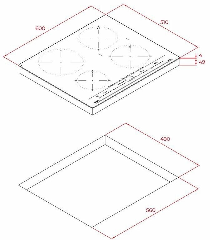 защитное отключение конфорок, индикатор остаточного тепла, кнопка блокировки панели
