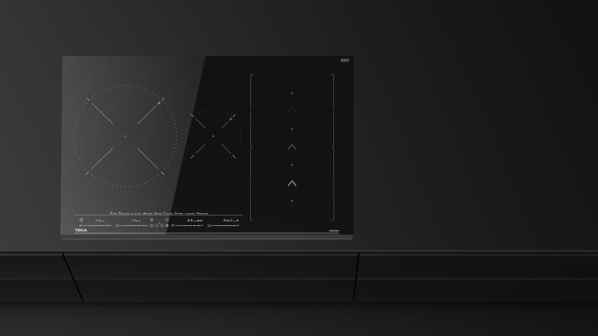 автоматика закипания, кратковременная пауза, поддержание тепла, распознавание наличия посуды, распознавание размера посуды, таймер, функция Booster, функция Flex Zone, функция ReStart, Индукционный мост