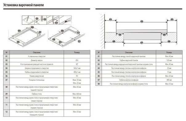 защитное отключение конфорок, индикатор остаточного тепла, кнопка блокировки панели