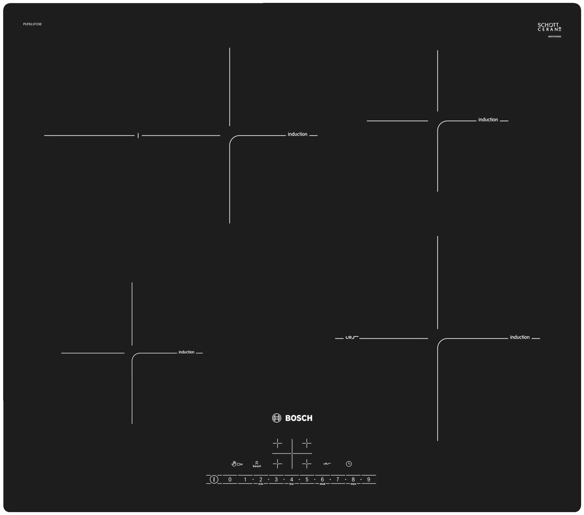 конфорки: 1 x Ø 145 мм, 1.4 кВт (в режиме PowerBoost - 2.2 кВт); 1 x Ø 180 мм, 2 кВт (в режиме PowerBoost - 3.1 кВт); 1 x Ø 145 мм, 1.4 кВт (в режиме PowerBoost - 2.2 кВт);1 x Ø 210 мм, 2.2 кВт (в режиме PowerBoost - 3.7 кВт); 17 ступеней мощности; функция "Детская безопасность", Cleaning-пауза: кратковременная блокировка панели до 30 секунд; минимальная толщина встраивания в столешницу 30 мм, кабель в комплекте; вес -11,779 кг