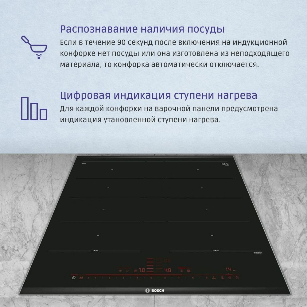 зона расширения FlexInduction 2; PanBoost, QuickStart, PowerBoost, MoveMode, PerfectFry, количество ступеней мощности 9