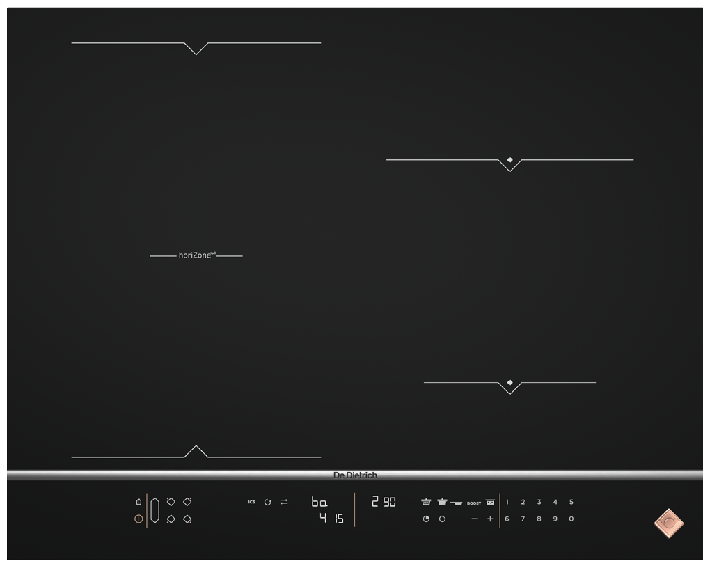 автоматика закипания, поддержание тепла, распознавание наличия посуды, распознавание размера посуды, таймер, функция Booster, функция ReStart, Booster, «Boost» «ICS» «Запоминание» «Истекшее время» «Кипение» «Сохранение настроек», функция объединения конфорок