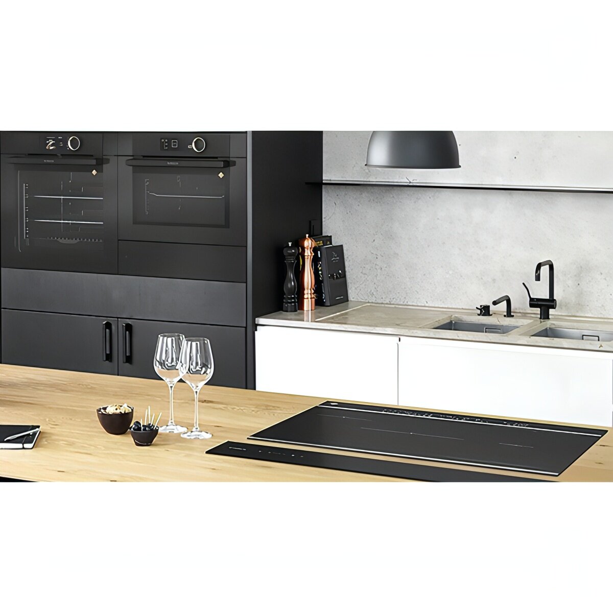 автоматика закипания, распознавание размера посуды, таймер, функция Booster, Booster, «Boost» «Запоминание» «Истекшее время» «Кипение», «Истекшее время», «Кипячение», «Память при отключении» и Clean Lock, функция объединения конфорок