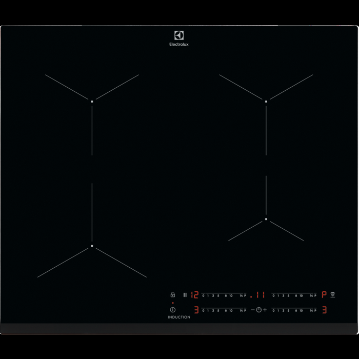 защитное отключение конфорок, индикатор остаточного тепла, кнопка блокировки панели