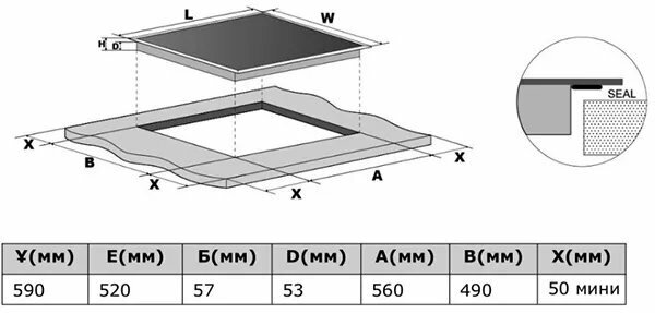 Размеры конфорок