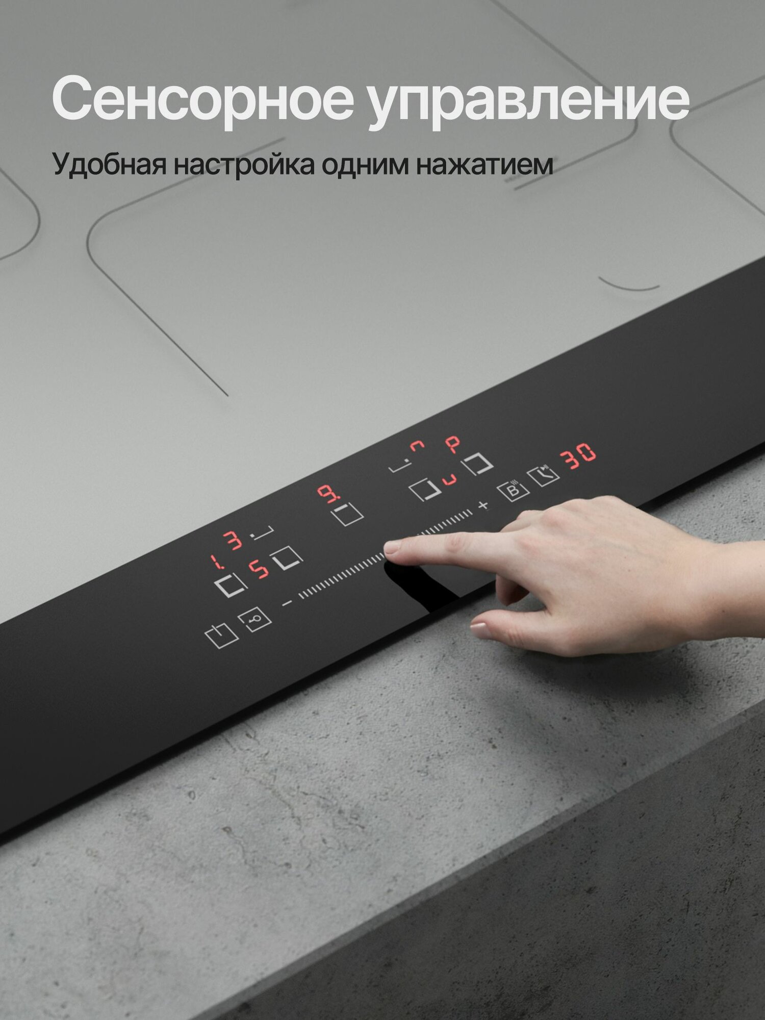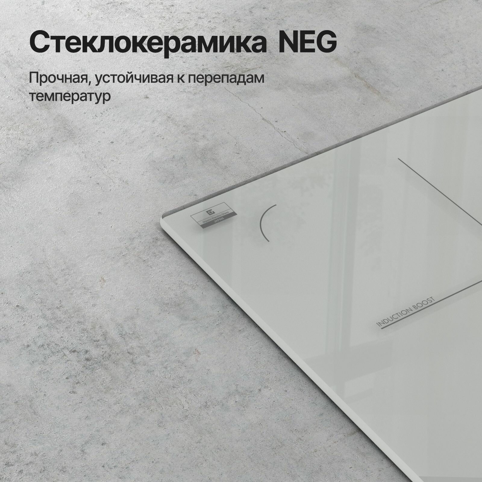 защитное отключение конфорок, индикатор остаточного тепла, кнопка блокировки панели