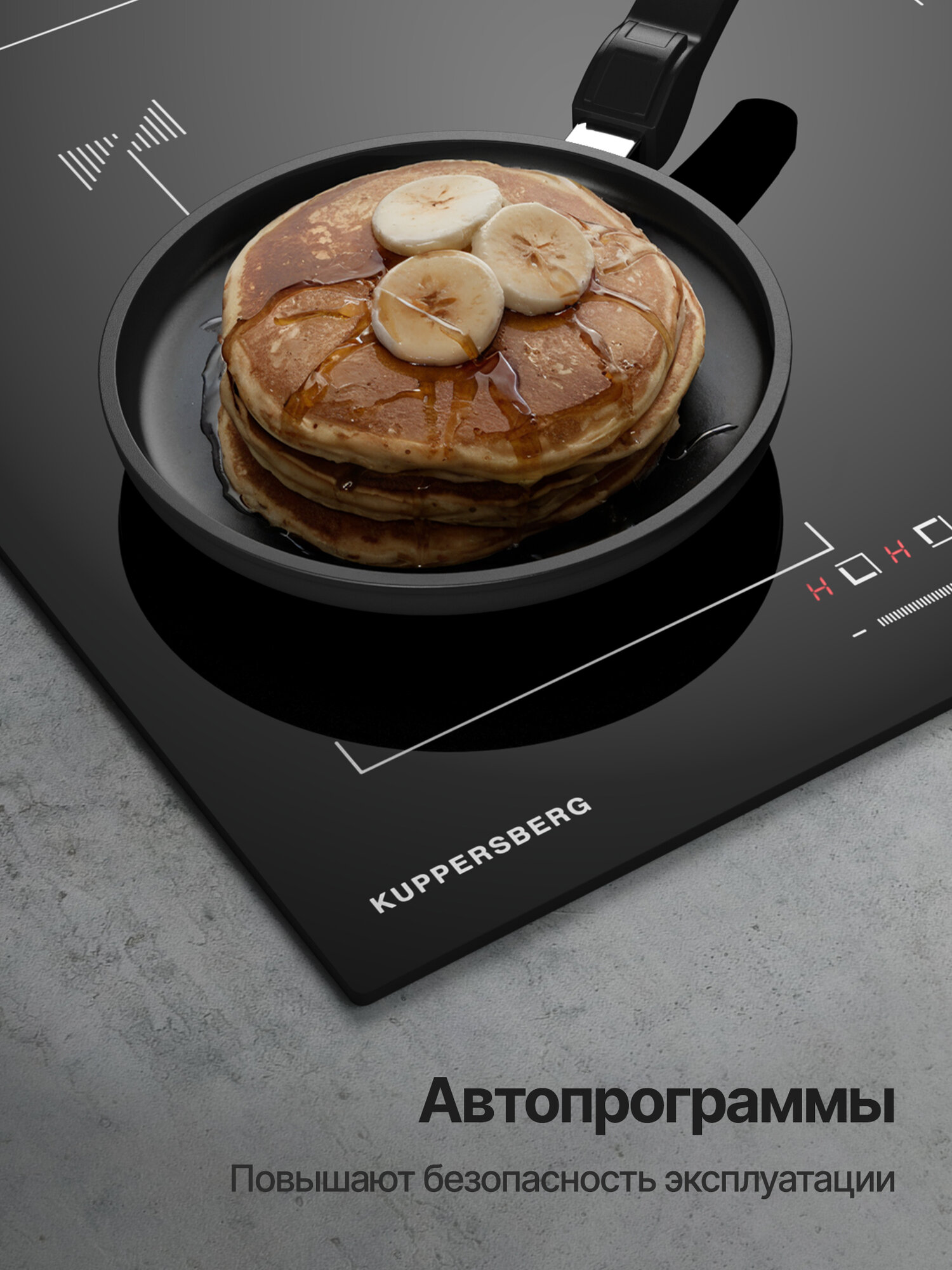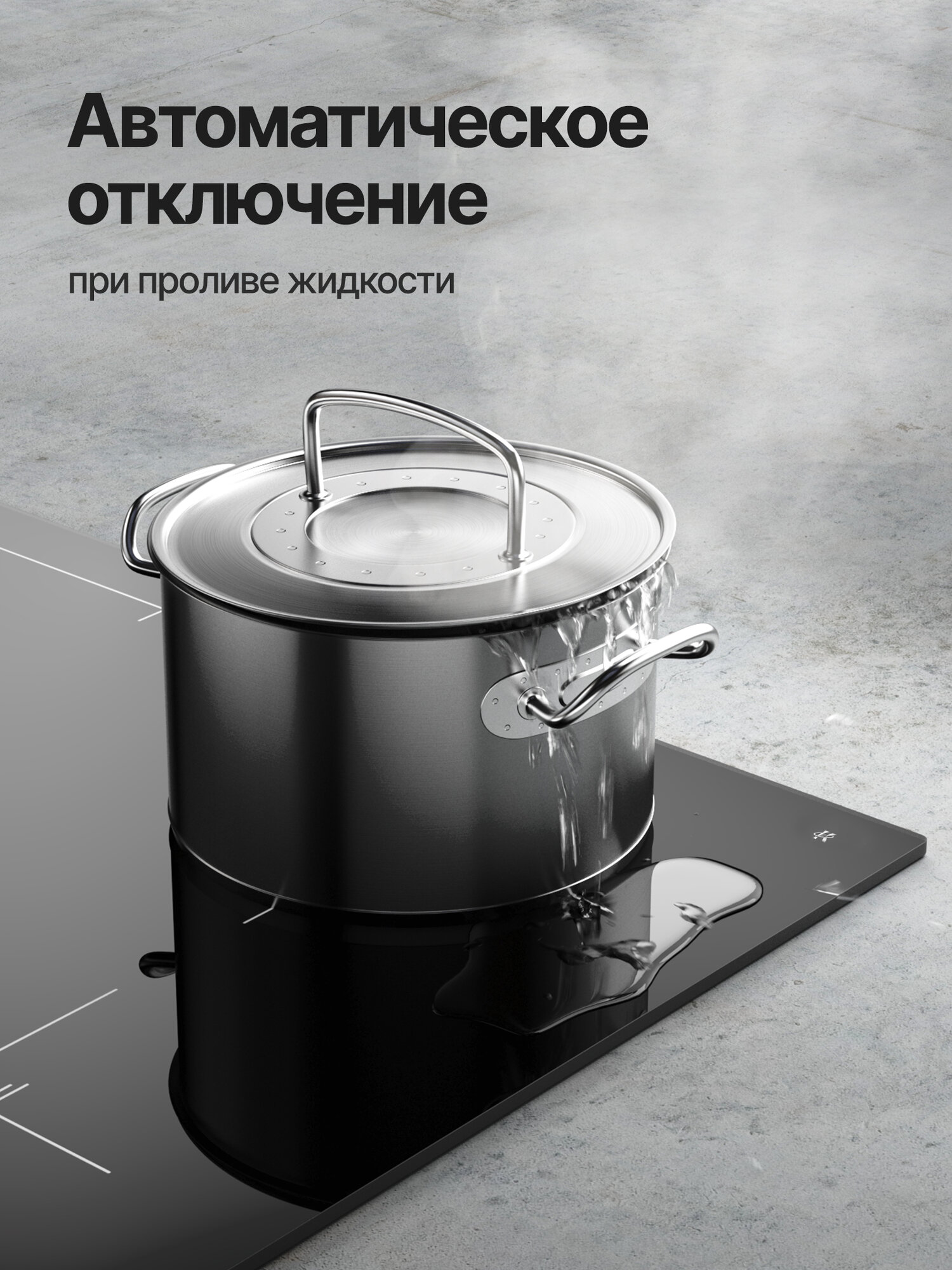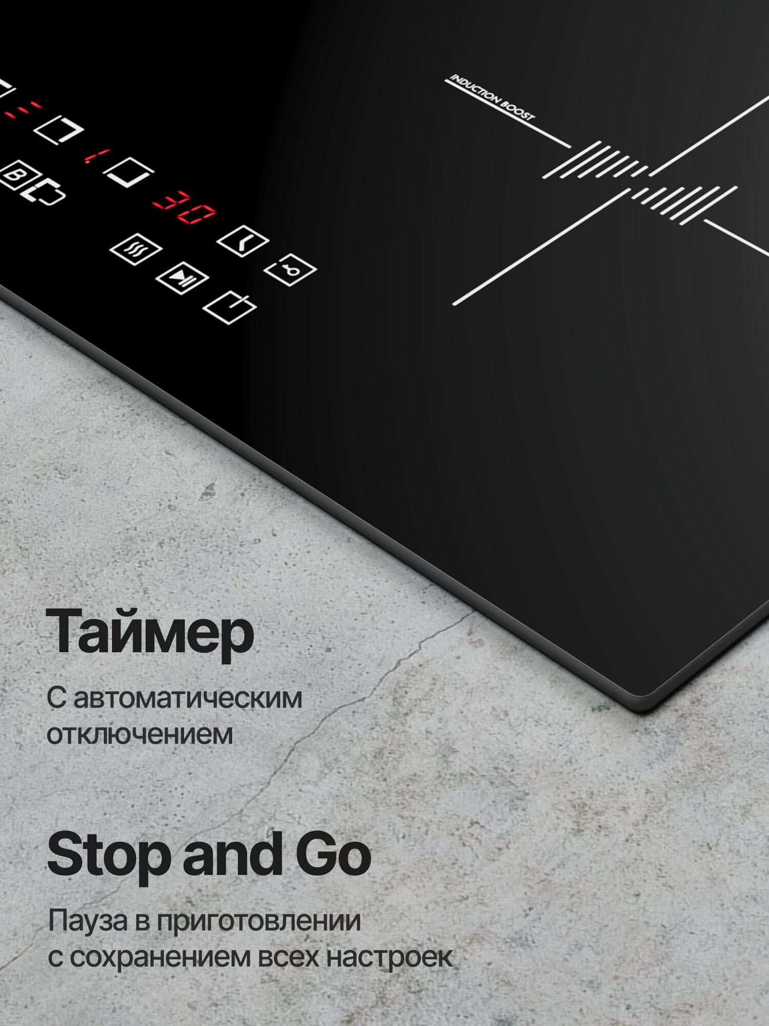 кратковременная пауза, распознавание наличия посуды, Быстрый нагрев, Индукционный мост, Расширение зоны нагрева