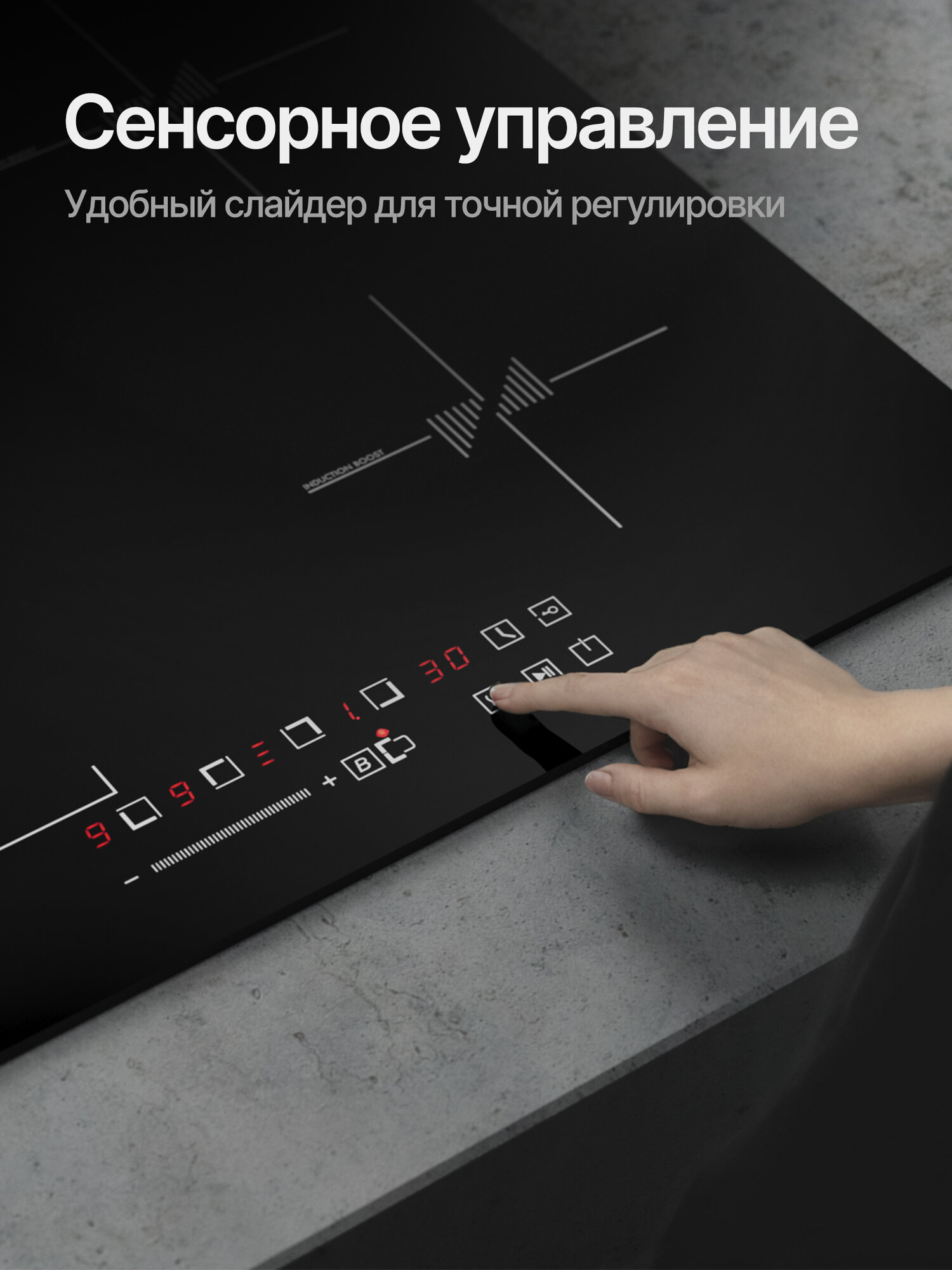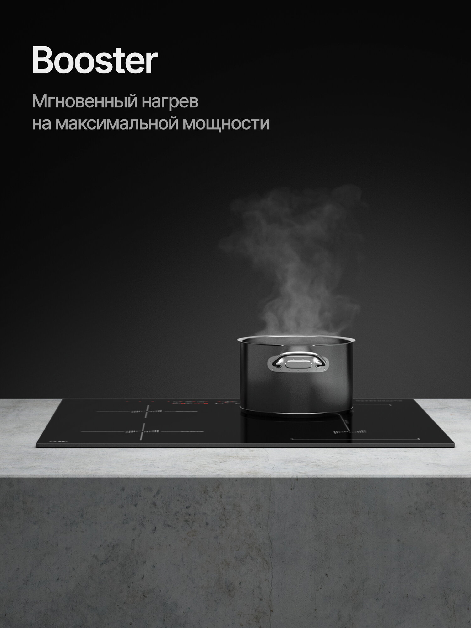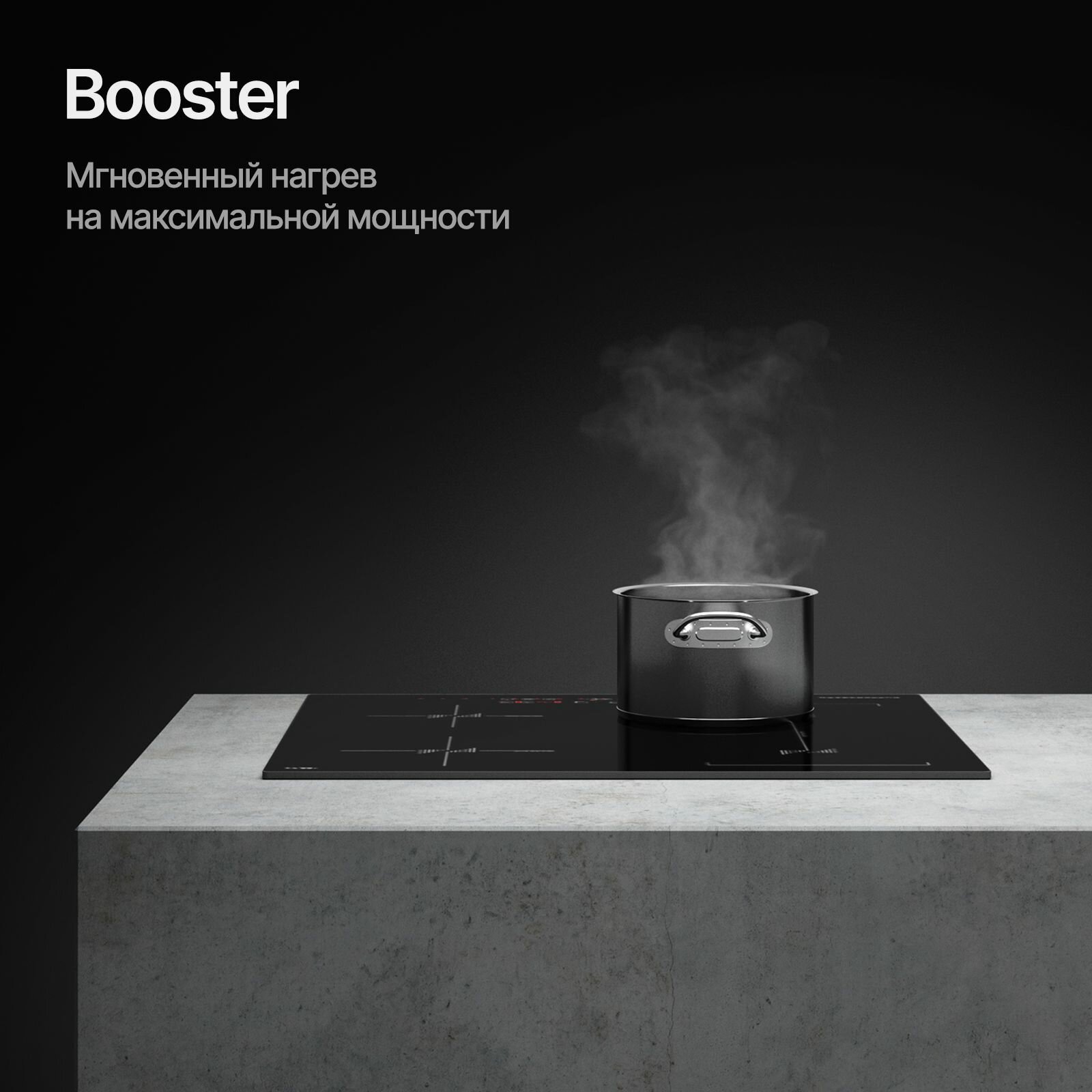 кратковременная пауза, распознавание наличия посуды, Быстрый нагрев, Индукционный мост, Расширение зоны нагрева
