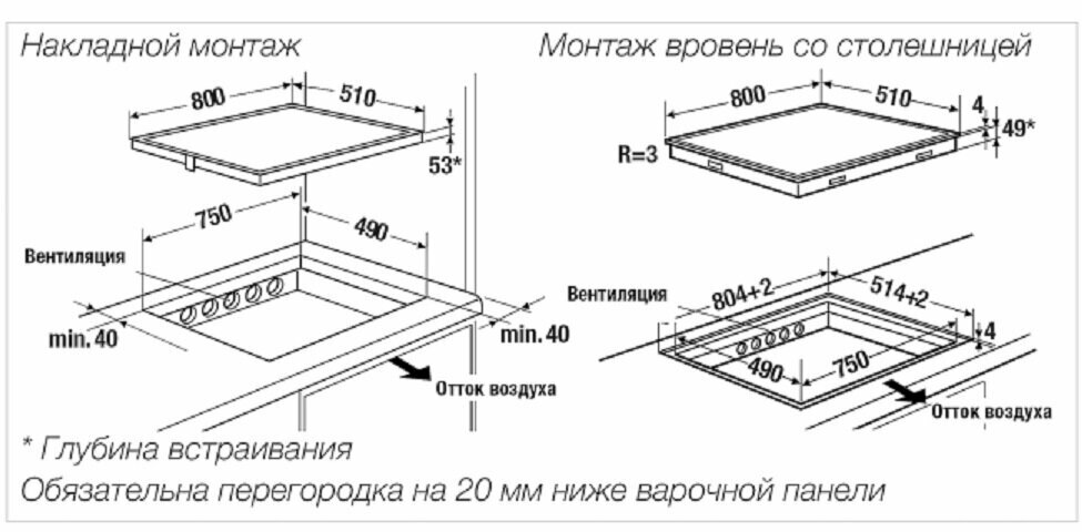 защитное отключение конфорок, индикатор остаточного тепла, кнопка блокировки панели