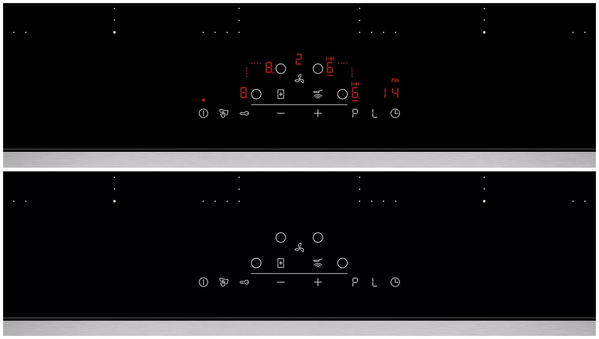 защитное отключение конфорок, индикатор остаточного тепла, кнопка блокировки панели