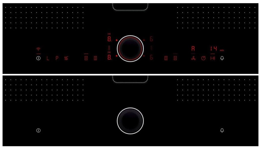 защитное отключение конфорок, индикатор остаточного тепла, кнопка блокировки панели