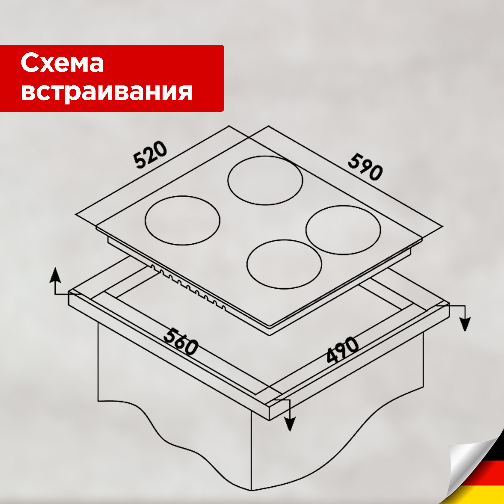защитное отключение конфорок, индикатор остаточного тепла, кнопка блокировки панели, Автоотключение, Блокировка кнопки включения