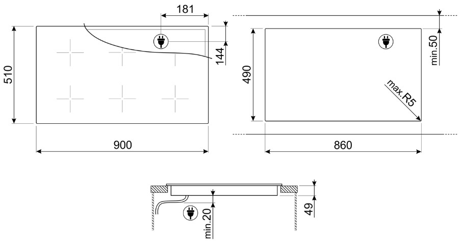 Режим ограничения мощности Функция гриля Быстрый старт Быстрый выбор уровня приготовления Multizone: 385x230 мм Двухфазное подключение Вариант напряжение: 380-415 В