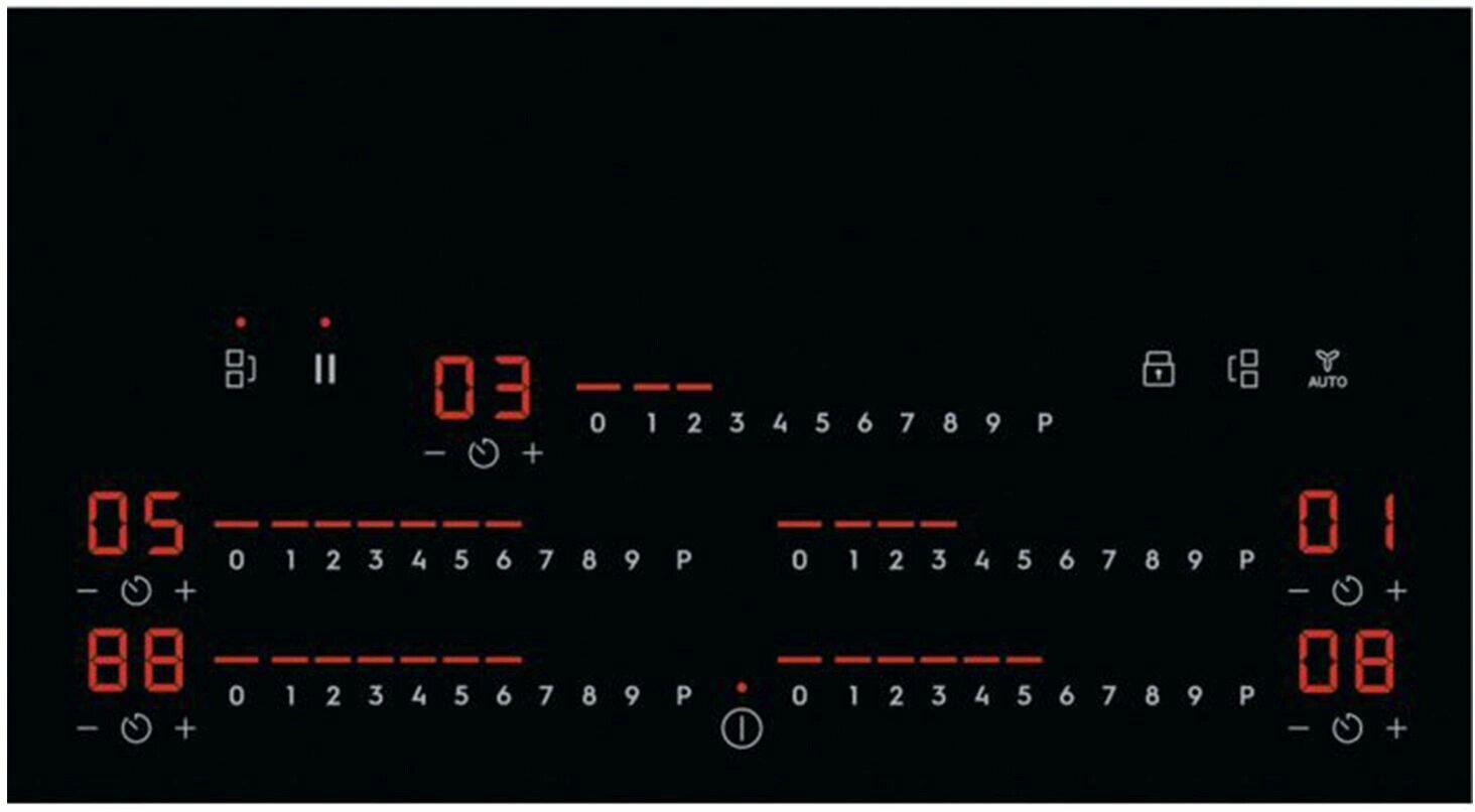 кратковременная пауза, наличие вытяжки, распознавание наличия посуды, распознавание размера посуды, таймер, функция Booster, функция Bridge, Индукционный мост